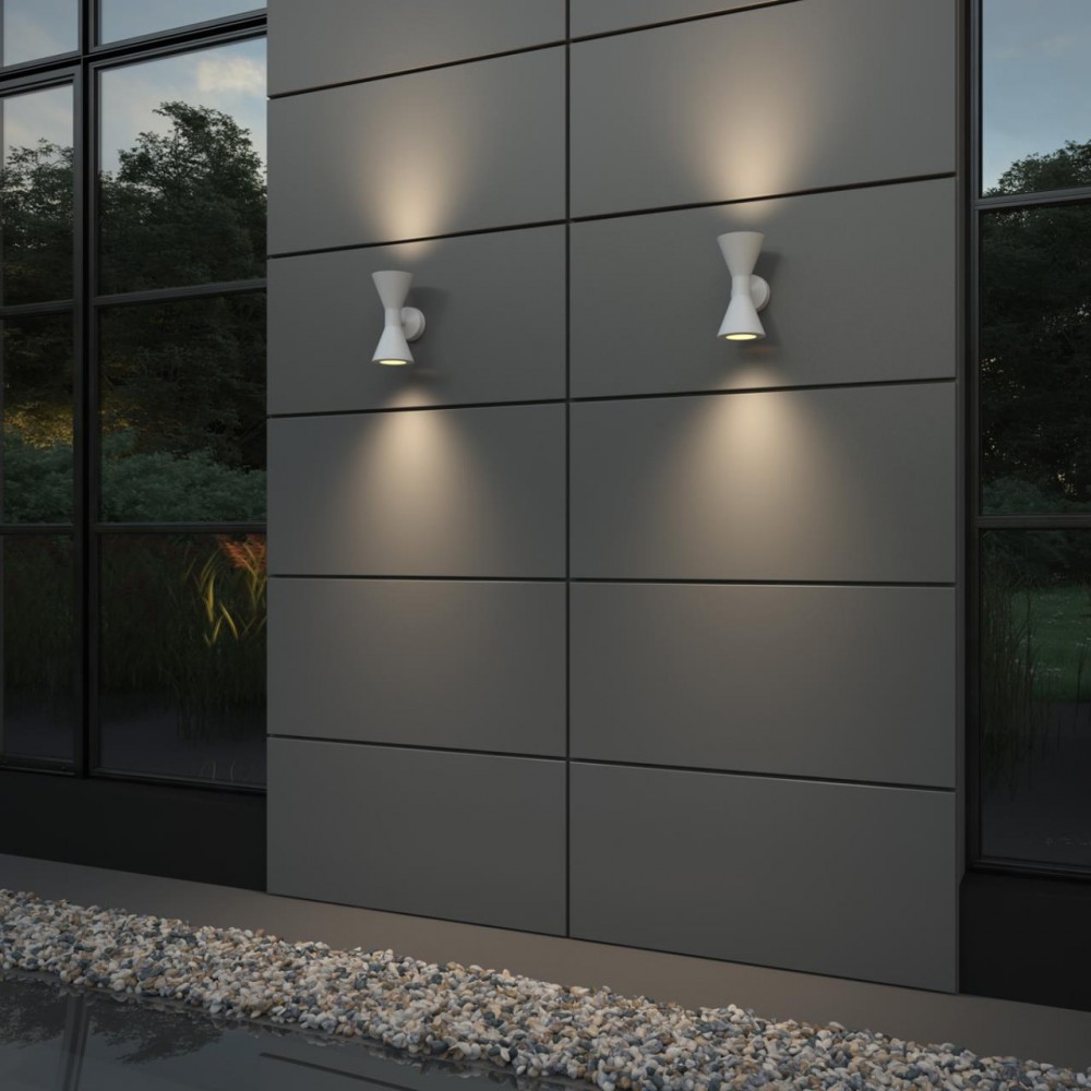 Линия Axen выполнена в стиле хай-тек и подойдет для освещения фасадов и стен домов в современном стиле. Основание светильника двух цветов: практичный графитовый и белый. Плафон с двух сторон закрыт закаленным матовым стеклом, защищающим светодиодные источники света от внешних воздействий. Светильник несет как функциональную, так и декоративную функцию: яркий свет от плафона прекрасно подсветит необходимую часть, а модный и стильный дизайн станет отличным дополнением к дизайну экстерьера