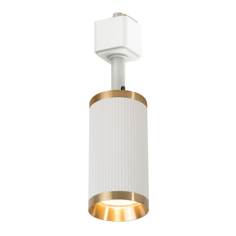 Светильники трековые на шинопровод GU10, однофазный (ИВО) FERON AL174, 50W, 230V, цвет белый,античное золото , корпус алюминий, вращение →350°/↓90°, 56*56*110 мм