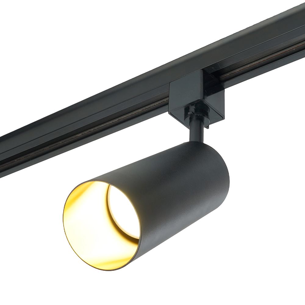 Светильники трековые на шинопровод GU10, однофазный (ИВО) FERON AL155, 15W, 230V, цвет черный-золото , корпус алюминий, вращение →350°/↓90°, 55*55*205 мм