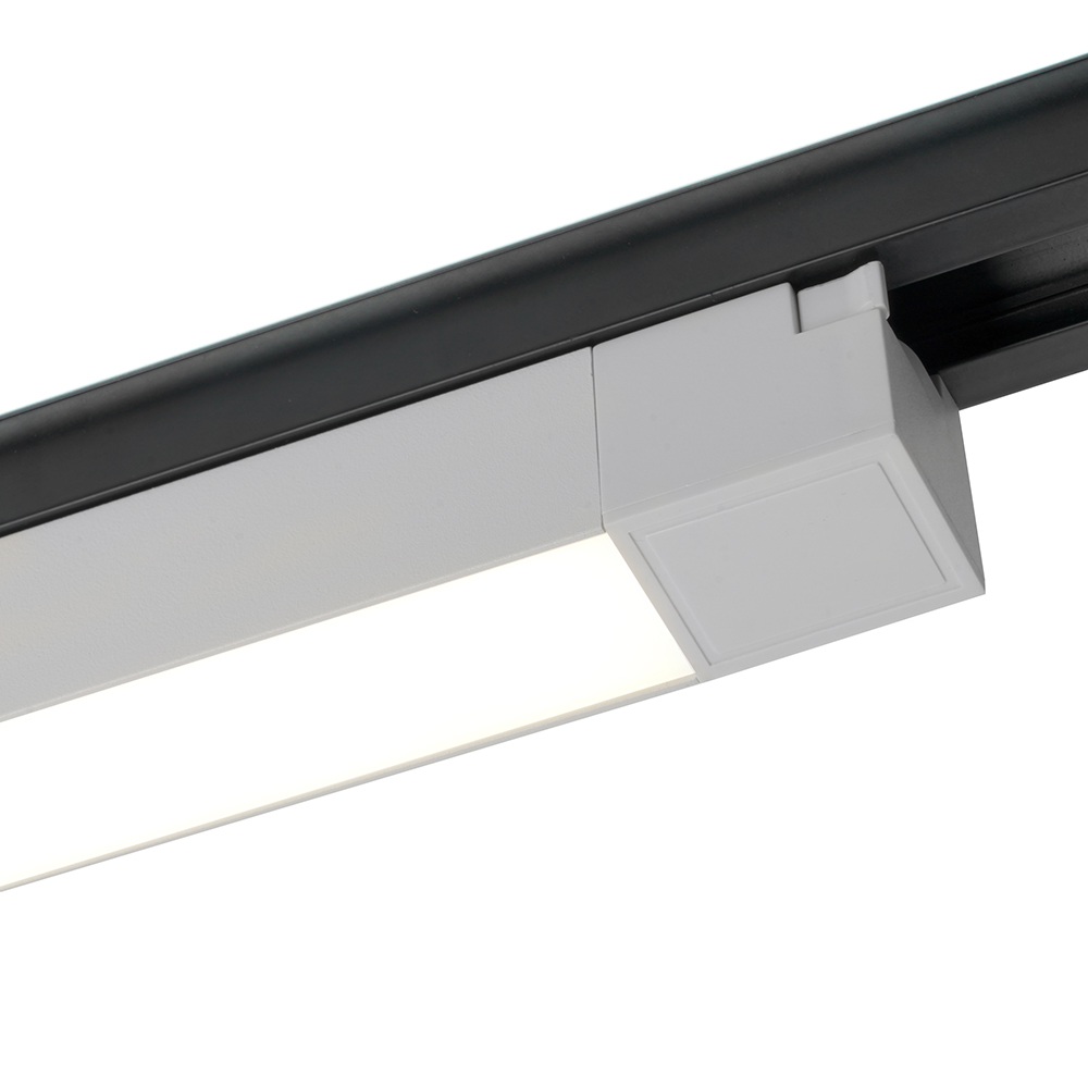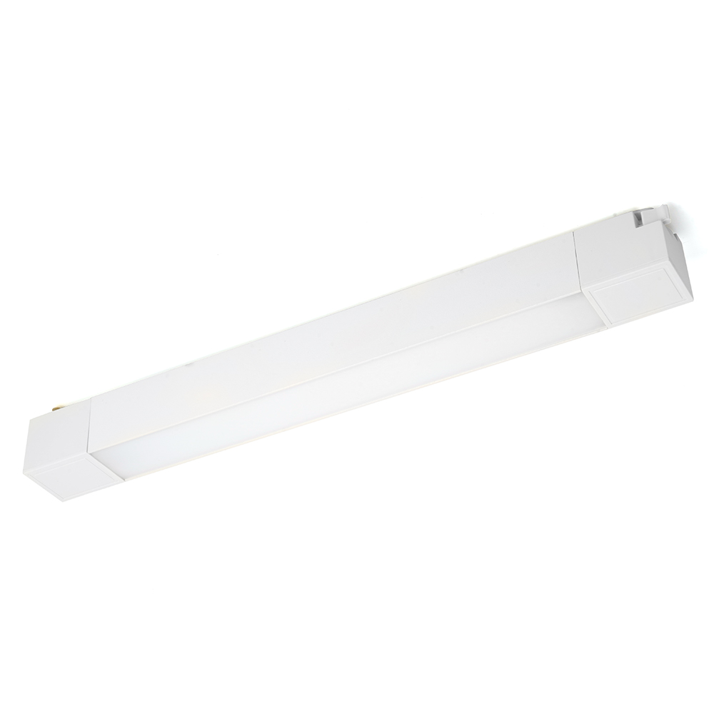 Светильник трековый на шинопровод, однофазный (ДПО) FERON AL132, 20W, 2700К (белый теплый), 170-265V, 1400Lm, цвет белый, корпус алюминий, рассеиватель пластик, вращение →0°/↓0°, 345*33*41 мм