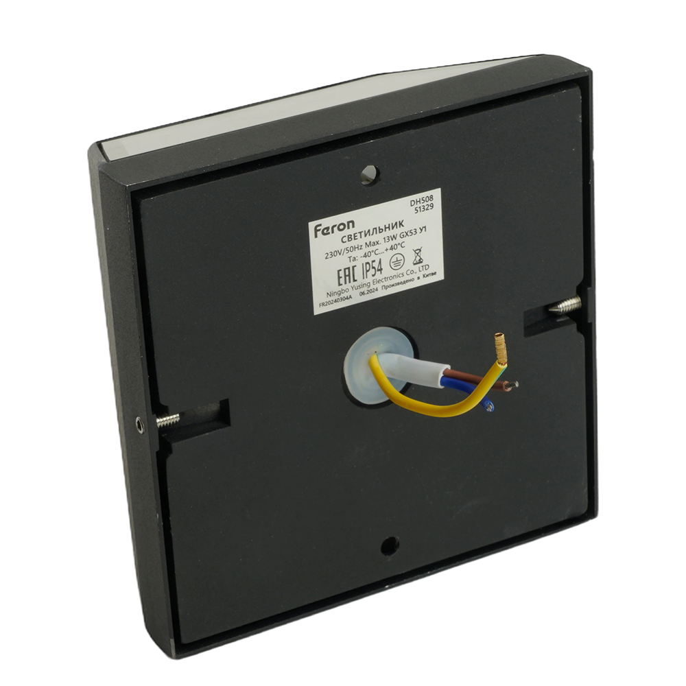 Светильник садово-парковый, серии «Дели», (ДБУ) FERON DH508 GX53, 230V, IP54, цвет черный, на стену , 105*60*105мм