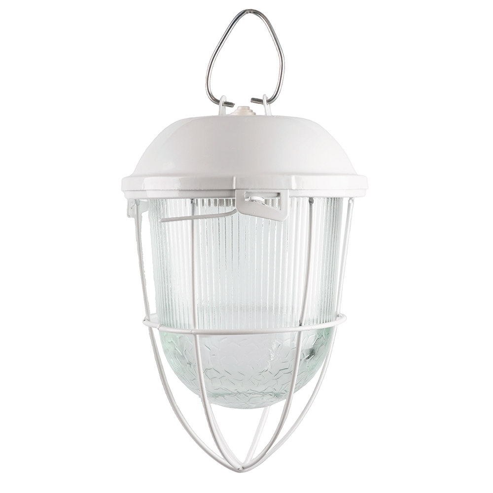 Светильник накладной под лампу, пылевлагозащищённый (НБО) FERON НСП 02-100-003 , E27 100W, 220V, IP54, цвет белый, корпус сталь, рассеиватель стекло, 170*170*313