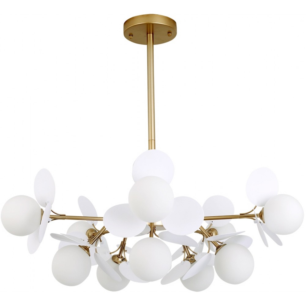 Потолочная люстра на штанге Peacock A1369SP-10SG от итальянской фабрики Arte Lamp подходит для размещения в гостиной, в кафе, в спальне, на кухне, в магазине, в стиле модерн. Материал изготовления – металл, цвет белый. Модель имеет 10 плафонов (стекло). Цоколь 10xG9. Освещаемая площадь до 17 кв. м. Мощность 400 W, питание от сети 220 V, cтепень защиты от влаги и пыли IP20. Габариты: длина – 78 см, ширина – 78 см, высота – 28 см, диаметр – 78 см, крепление на монтажную пластину
