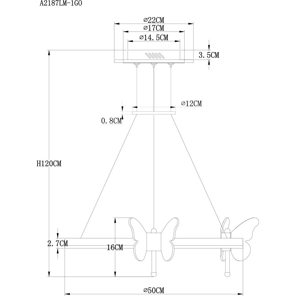 Подвесной светильник с пультом, светодиодный в форме кольца, с бабочками Darcy A2187LM-1GO от итальянской фабрики Arte Lamp подходит для размещения в гостиной, в кафе, в спальне, в магазине, в стиле модерн, современный. Материал изготовления – металл, цвет прозрачный. Модель имеет 1 рассеиватель (акрил). Цоколь 1xLED. Освещаемая площадь до 15 кв. м, световой поток 4700 lm, цветовая температура 3000-6000 К. Срок службы лампочек составит не менее 20000 ч. Мощность 72 W, питание от сети 220 V, cтепень защиты от влаги и пыли IP20. Габариты: высота – 120 см, диаметр – 50 см, крепление на монтажную пластину.