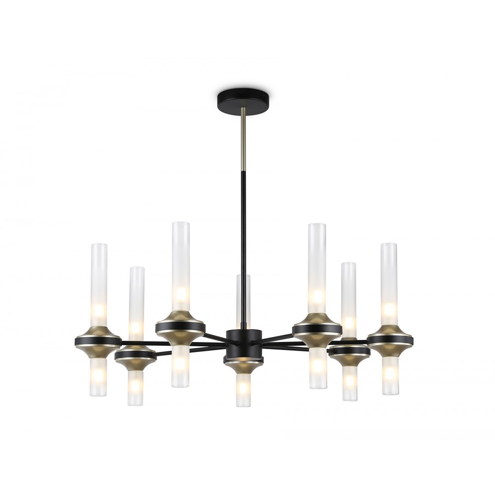 Подвесная люстра из коллекции HIGH LIGHT. Модель LH55353 представлена в стиле неоклассика. Люстра выполнена из металлического каркаса черного и золотого цветов и стеклянных прозрачных плафонов. Для данной модели подойдут лампы с цоколем G9. Люстра будет прекрасным дополнением в любом помещении.