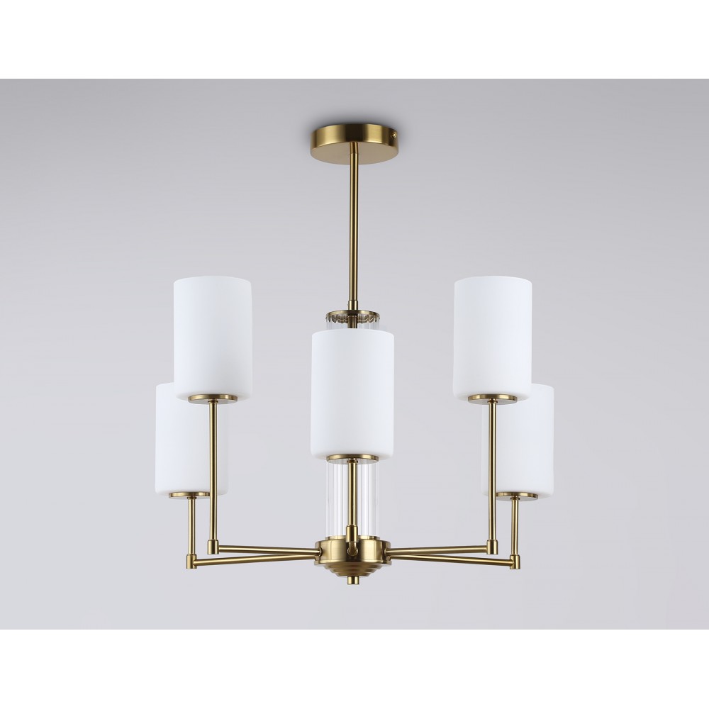 Подвесная люстра из коллекции HIGH LIGHT. Модель LH56215 представлена в стиле неоклассика. Люстра выполнена из металлического каркаса цвета латунь и стеклянных матовых плафонов. Для данной модели подойдут лампы с цоколем Е27. Люстра будет прекрасным дополнением в любом помещении.