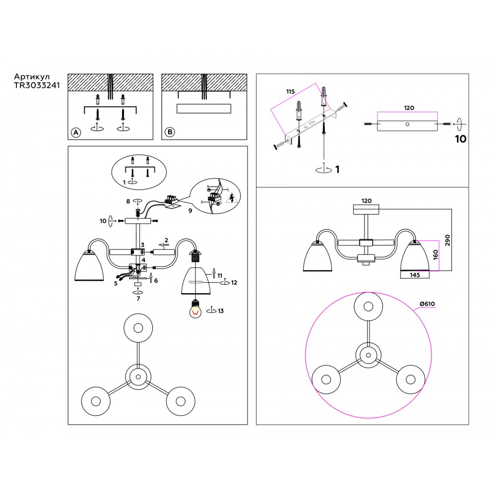 Подвесной светильник из коллекции TRADITIONAL. Модель TR3033241 представлена в современном стиле неоклассика. Светильник выполнен в черном и цвете хром, каркас изготовлен из металла и светлого дерева, плафоны из белого матового стекла. Для данной модели подойдут лампы с цоколем Е27. Светильник будет прекрасным дополнением в любом помещении.