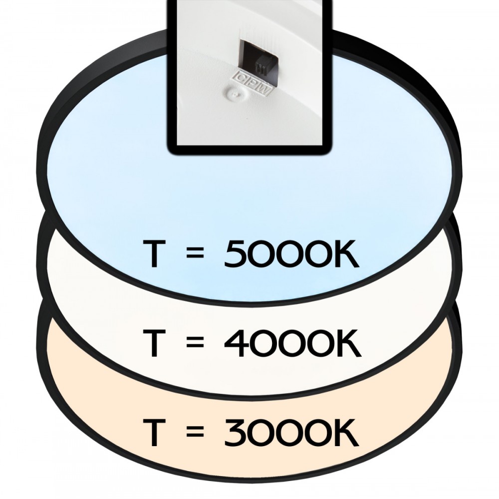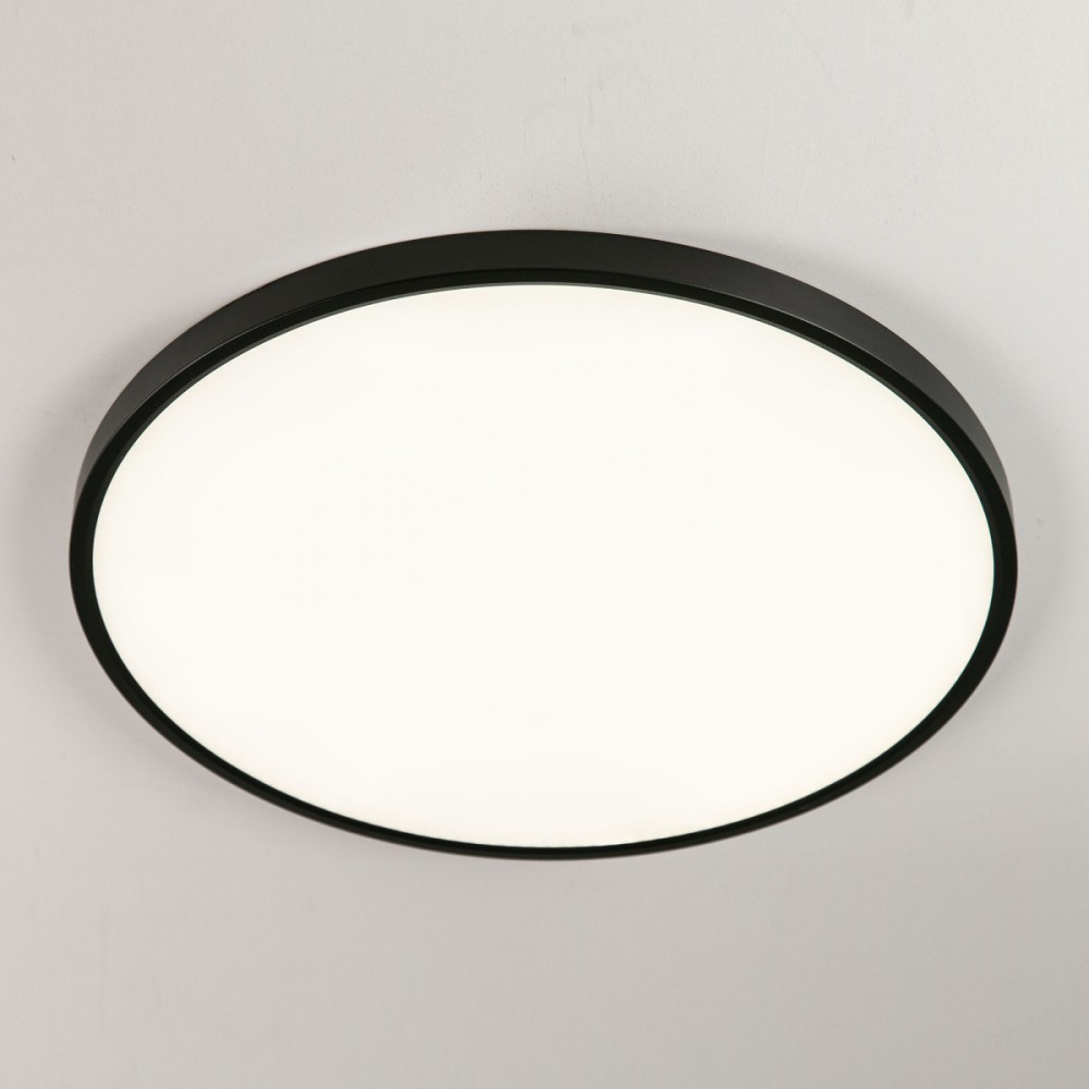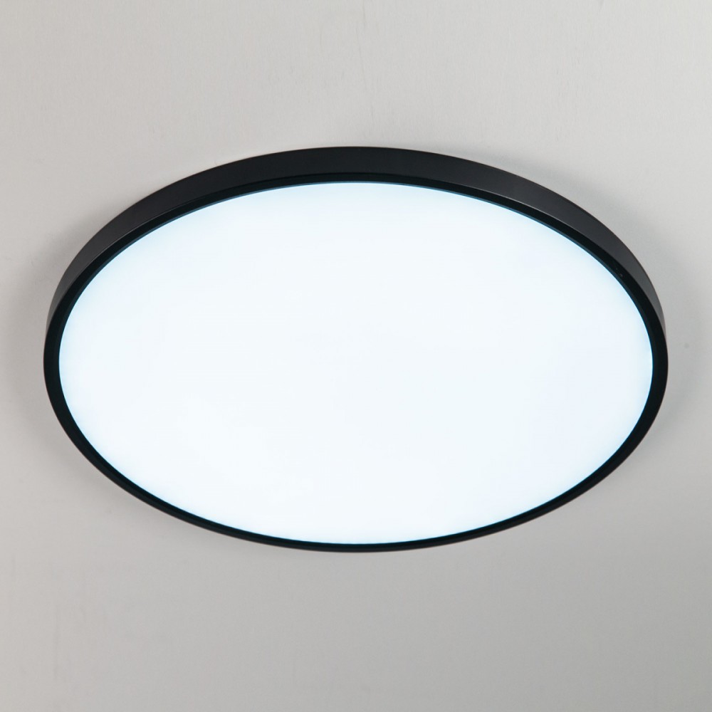 Накладной светодиодный светильник Citilux Бейсик CL738501V черного цвета, мощностью 50Вт. Круглый корпус модели изготовлен из ударопрочного полимера, рассеиватель матовый из оптического полимера. Светильник обладает высокой энергоэффективностью – 120Лм/Вт, оснащен встроенным 3-х ступенчатым диммером 100-50-10% яркости, управляется настенным выключателем. Модель имеет ступенчатую регулировку цветовой температуры 3000К-4000К-5000К, для этого перед монтажом, на тыльной стороне светильника, переключателем устанавливается выбранный вариант свечения. Свет без мерцаний и пульсаций. Высота корпуса всего 25мм, тип крепления – удобная монтажная платформа.