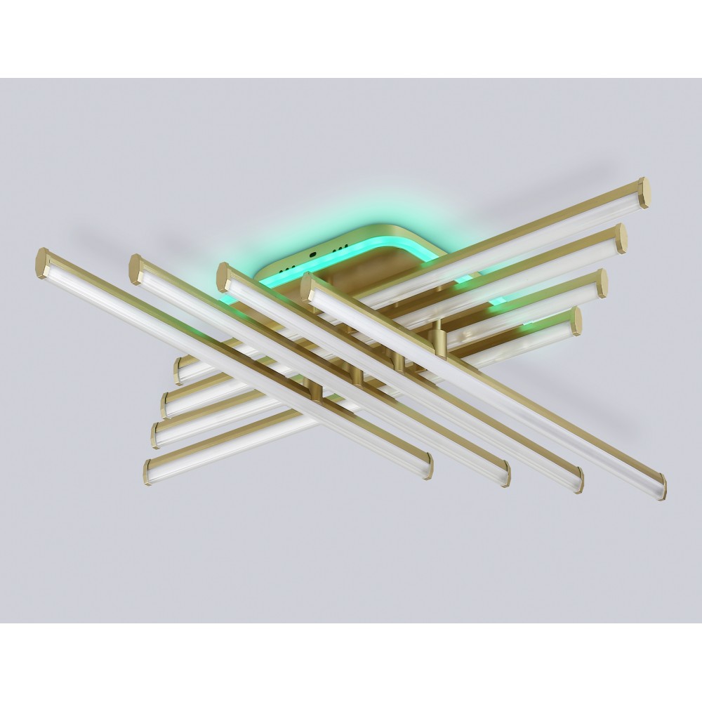 Потолочный светодиодный светильник с пультом управления из серии COMFORT. Модель FL6263 представлена в современном стиле хай-тек и техно. Светильник выполнен в цвете золото. Изготовлен из высококачественного пластика и метала и декорирован двойным рассеивателем белого и прозрачного цвета. Данная модель оснащена RGB подсветкой. В конструкцию этого светильника уже встроены светодиоды, что исключает поиск или замену дополнительных ламп. С помощью инфракрасного о пульта вы сможете регулировать цвето