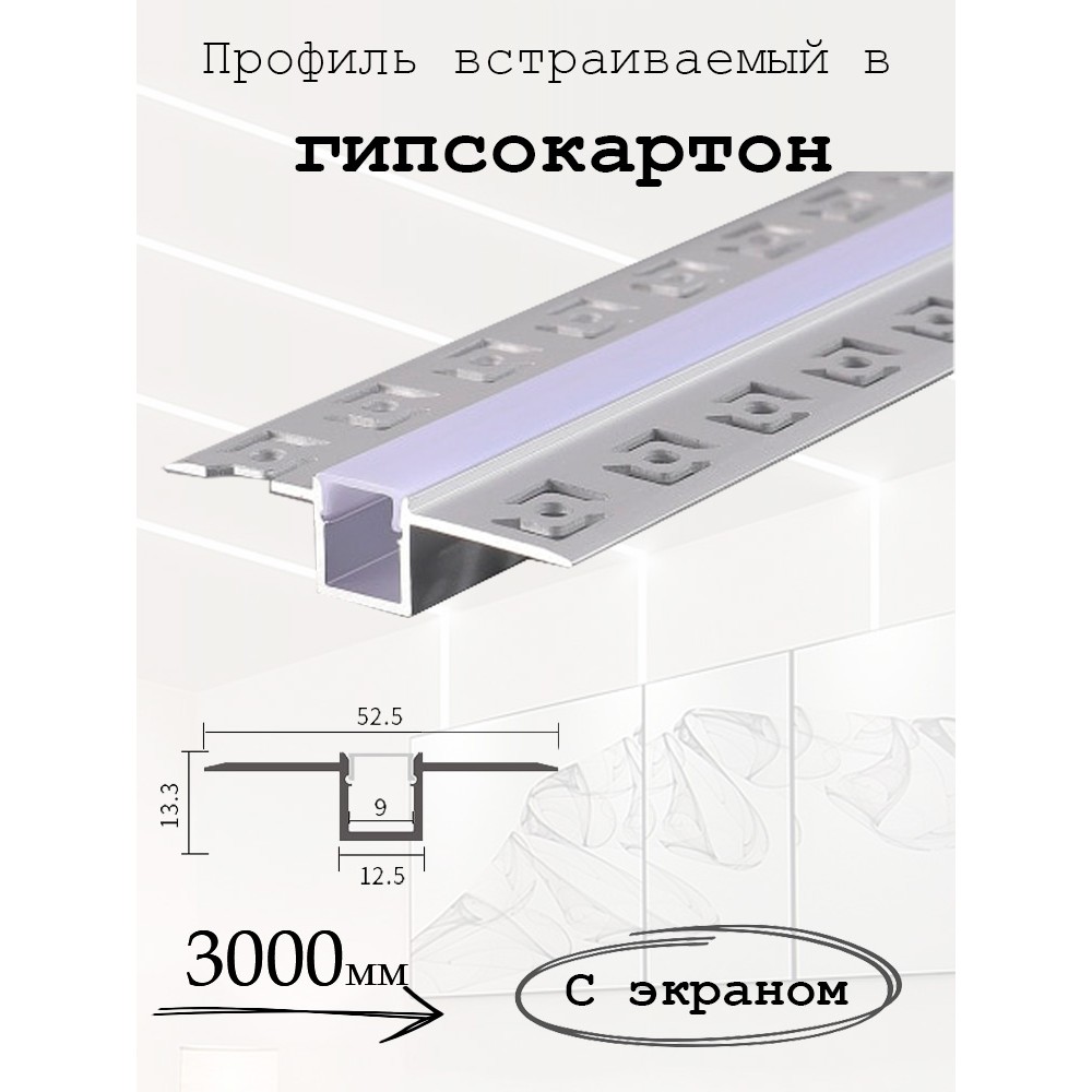Профиль алюминиевый анодированный встраиваемый в гипсокартон GS-5313-G. Длина 3000мм. В комплекте с экраном