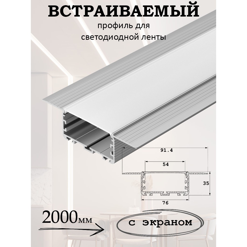 Профиль алюминиевый анодированный врезной GS-9135-А кит 2000мм в комплекте с экраном.