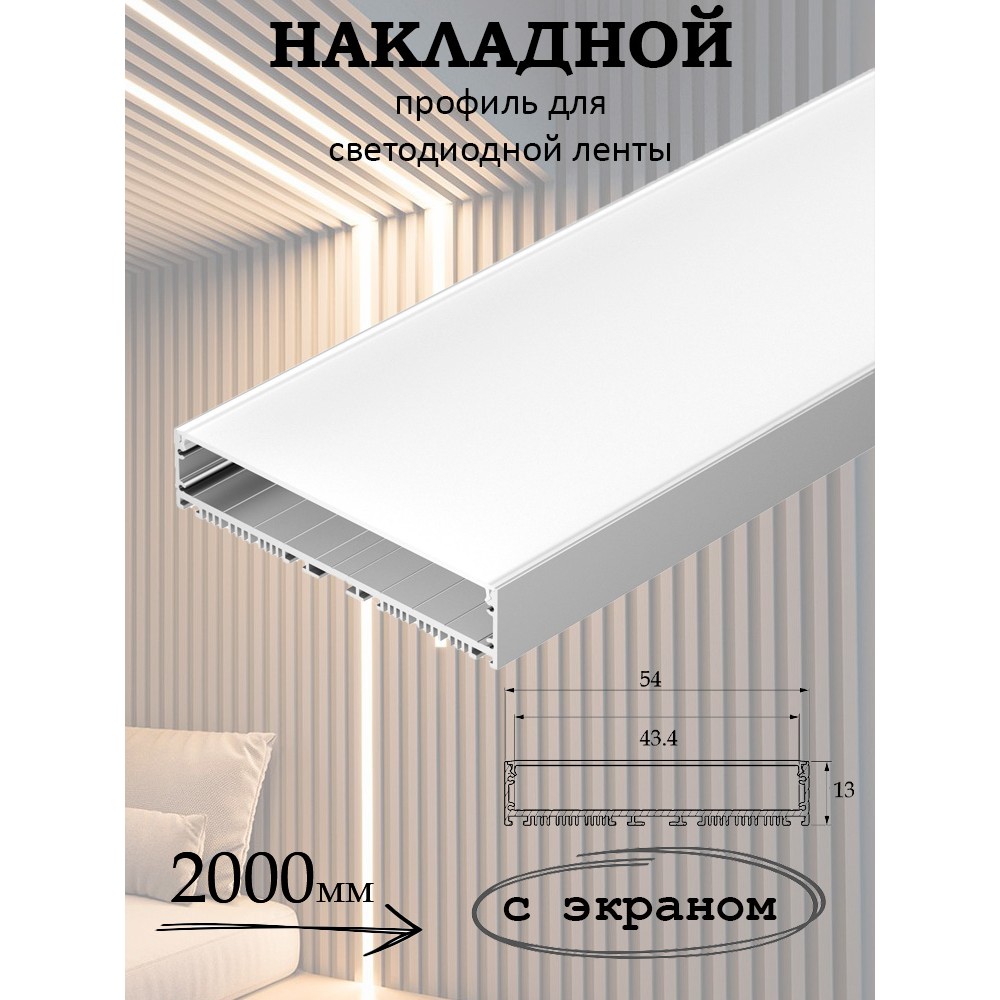 Профиль алюминиевый анодированный накладной GS-5413-N кит 2000мм в комплекте с экраном