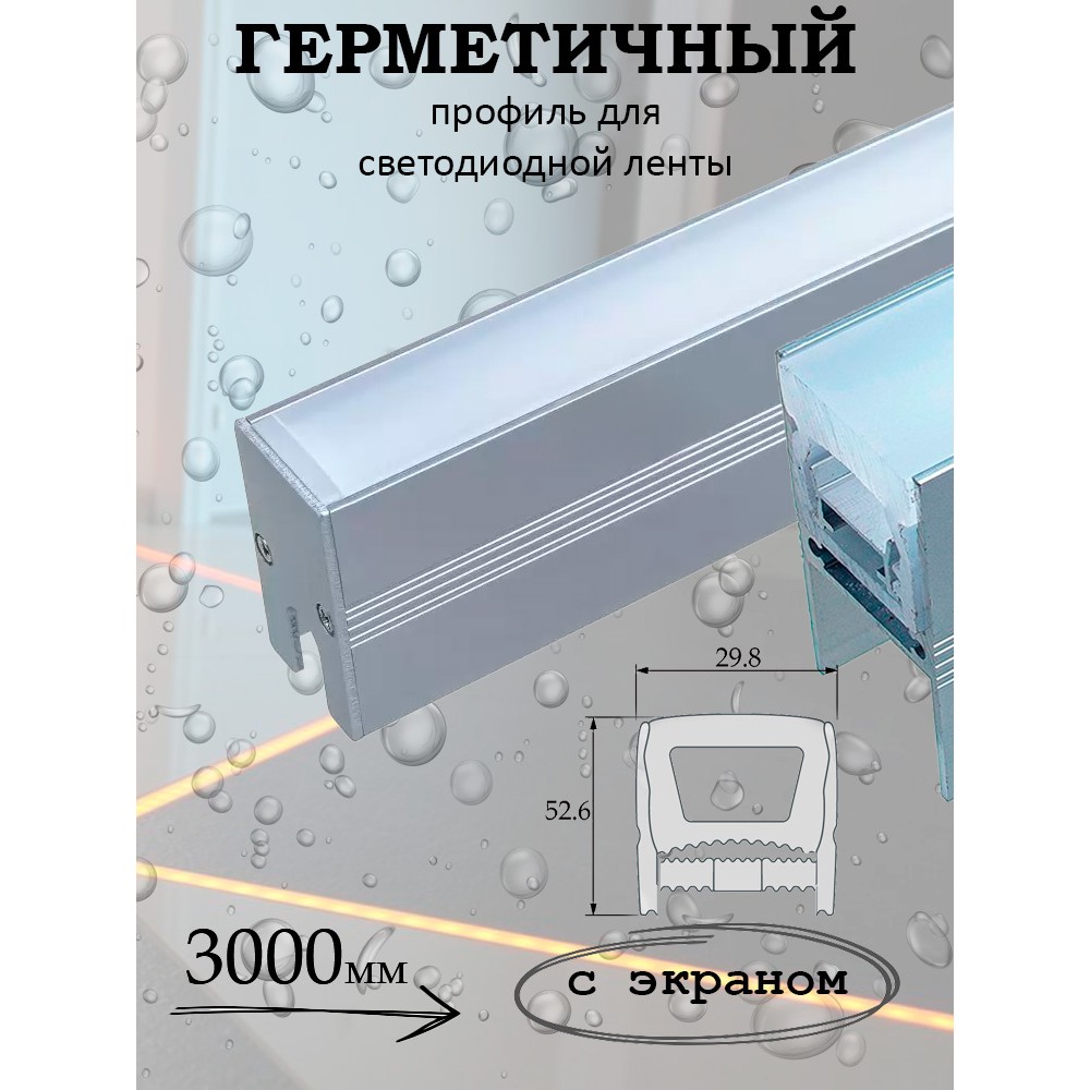 Профиль алюминиевый встраиваемый в пол с экраном герметичный GS-3053-FW 3000мм.