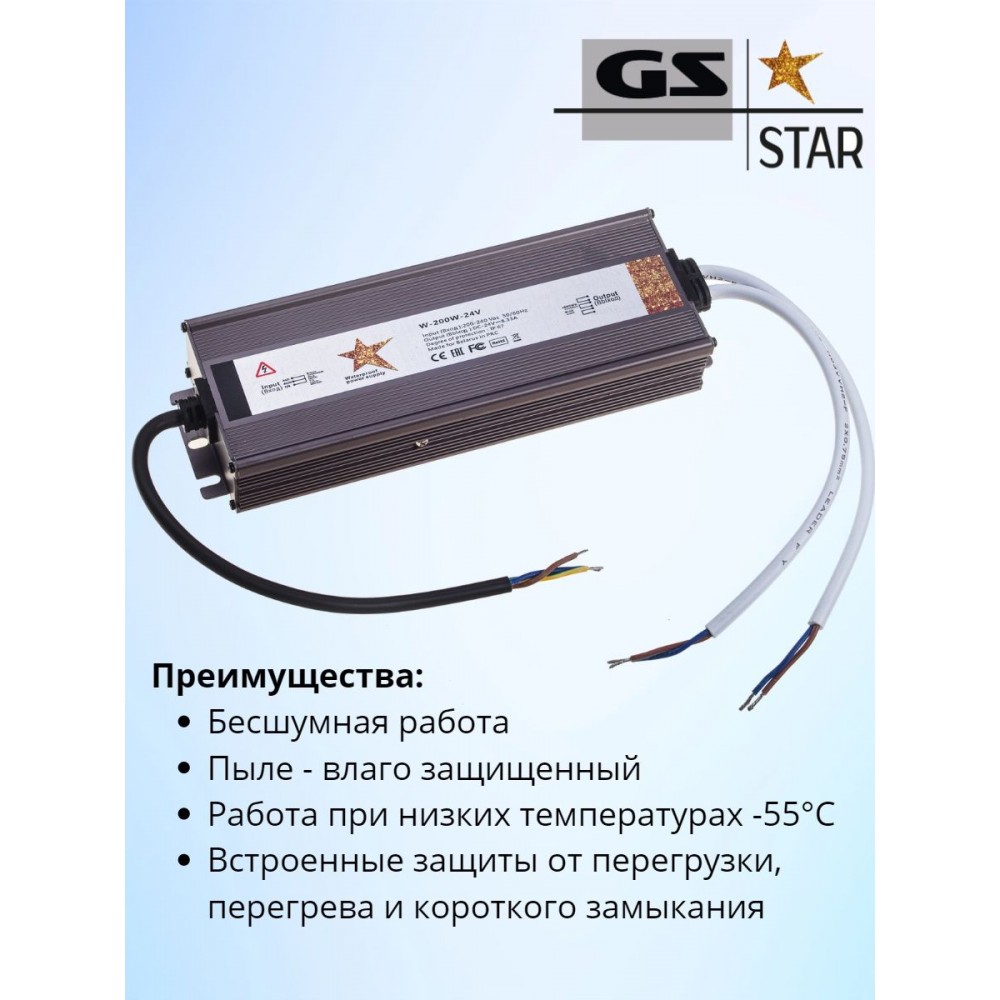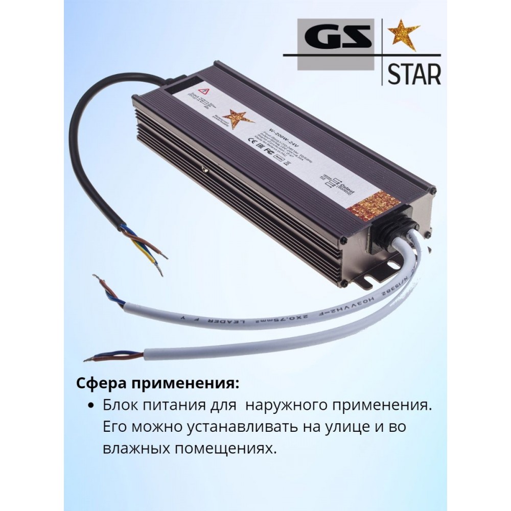 Герметичный блок питания 24В 200Вт предназначен для энергоснабжения светодиодных систем, обладает высокой эффективностью и защищенностью. Адаптер питания имеет выходную мощность 200 Вт и напряжение 24В, может применяться не только для светодиодных осветительных приборов, но и для питания других низковольтных устройств. Блок питания 24V имеет степень защиты от пыли и влаги IP67, предназначен для применения в системах внутреннего и наружного освещения, в помещениях с повышенной влажностью, также на улице.