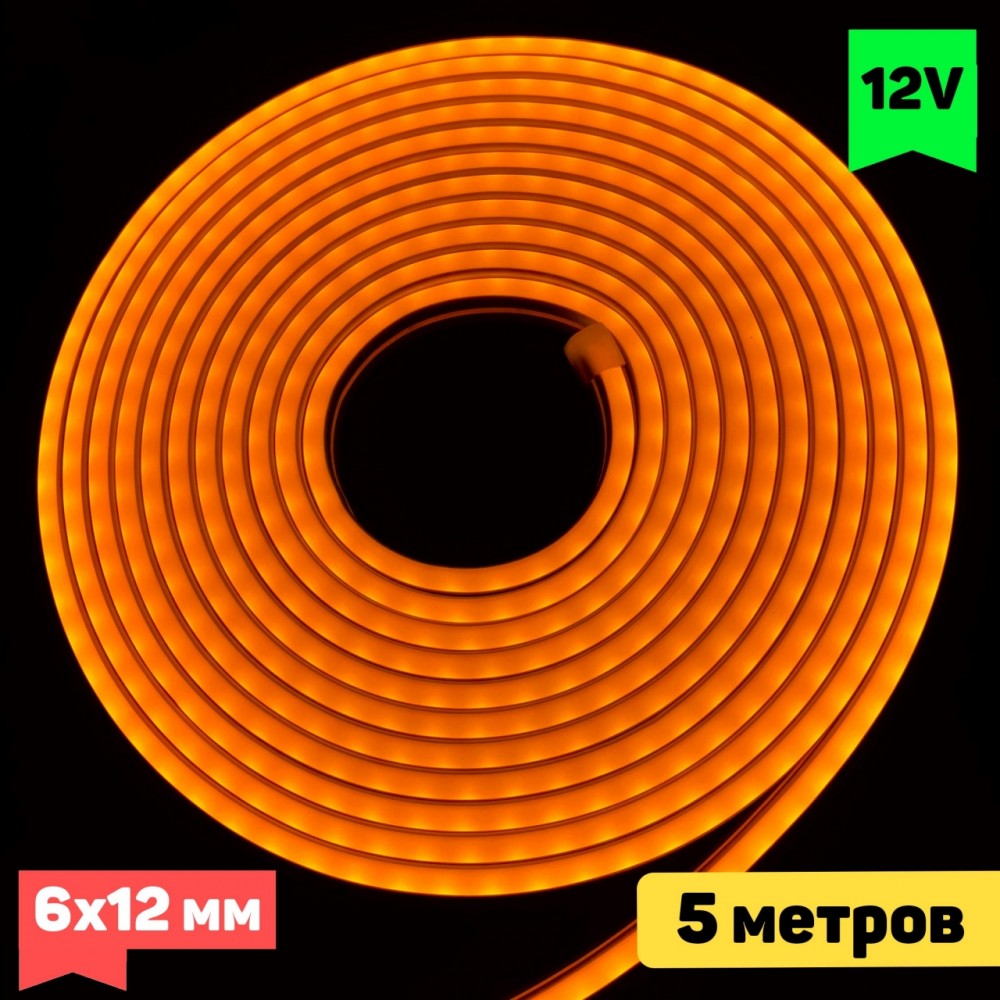 Гибкий неон жёлтого цвета свечения. Потребляема мощность 10 вт/метр. Рабочее напряжение 12 Вольт. Длина катушки 5 метров.