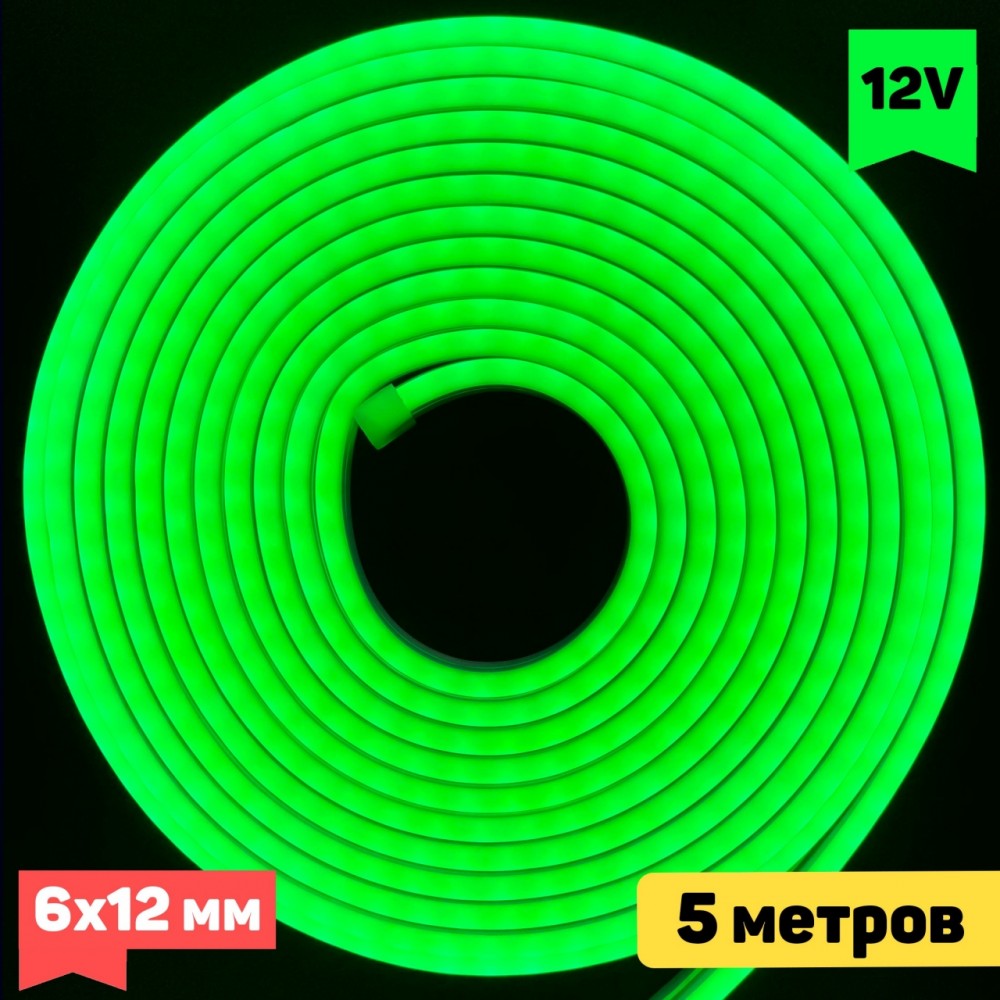 Гибкий неон зелёного цвета свечения. Потребляема мощность 10 вт/метр. Рабочее напряжение 12 Вольт. Длина катушки 5 метров.