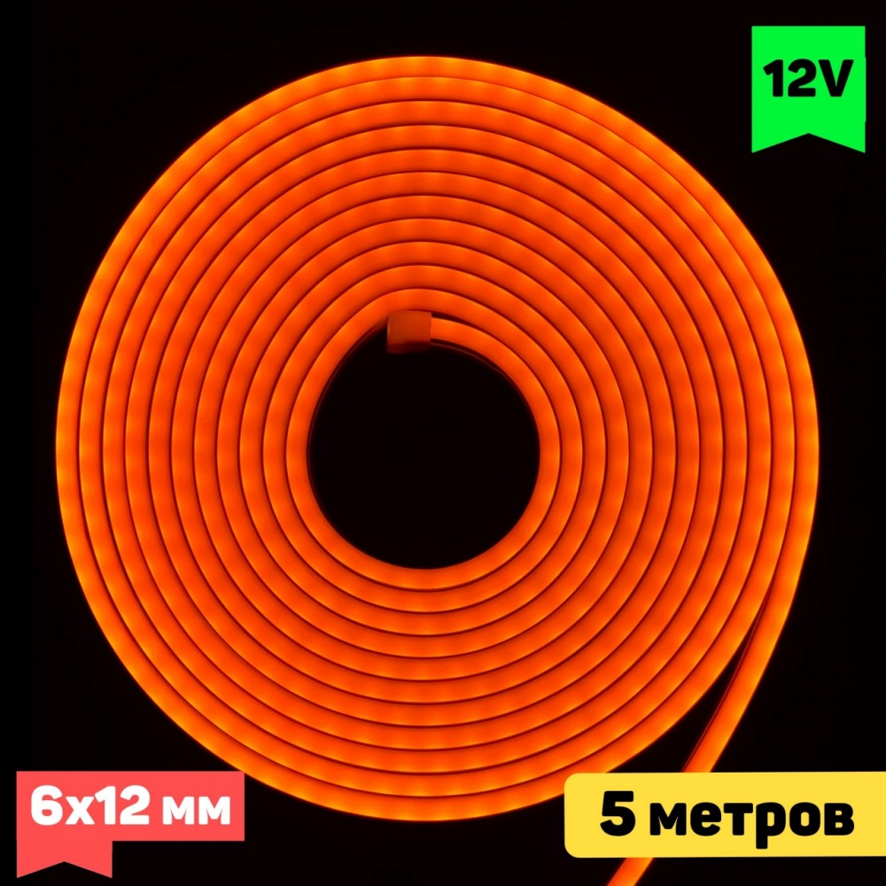 Гибкий неон оранжевого цвета свечения. Потребляема мощность 10 вт/метр. Рабочее напряжение 12 Волт. Длина катушки 5 метров.