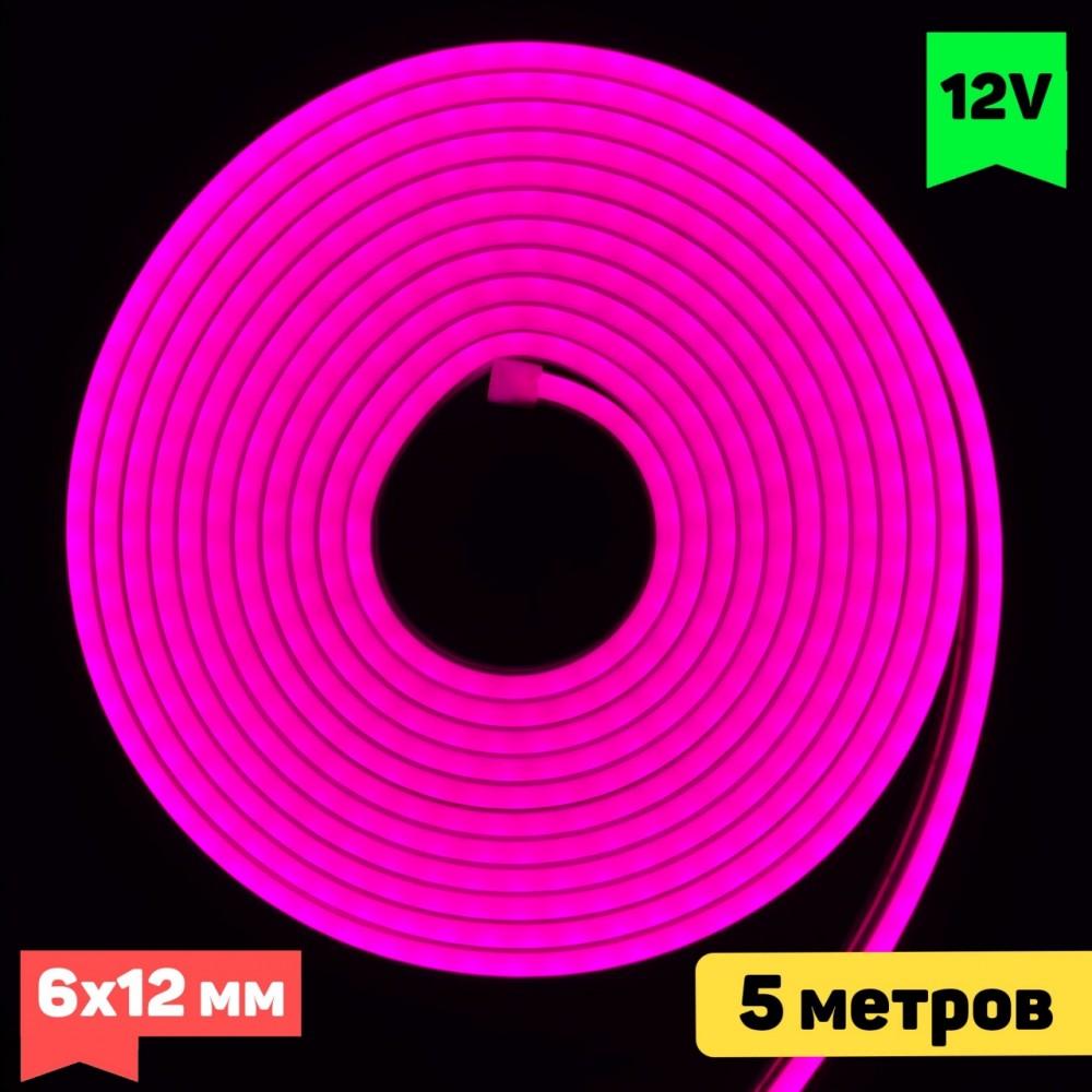 Гибкий неон розового цвета свечения. Потребляема мощность 10 вт/метр. Рабочее напряжение 12 Вольт. Длина катушки 5 метров.