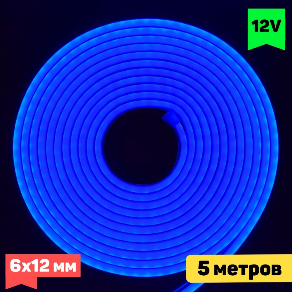 Гибкий неон голубого цвета свечения. Потребляема мощность 10 вт/метр. Рабочее напряжение 12 Вольт. Длина катушки 5 метров.