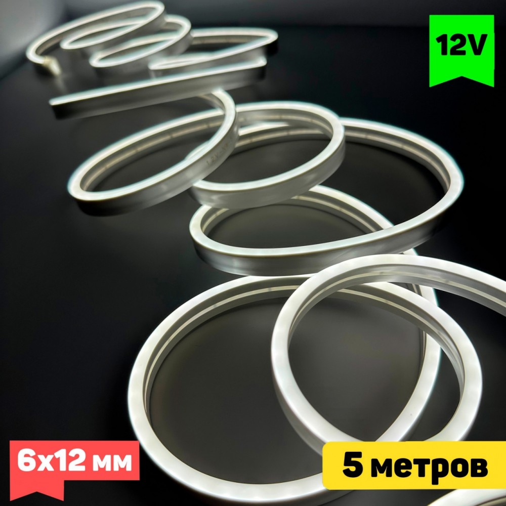 Гибкий неон нейтрального цвета свечения. Потребляема мощность 10 вт/метр. Рабочее напряжение 12 Вольт. Длина катушки 5 метров.