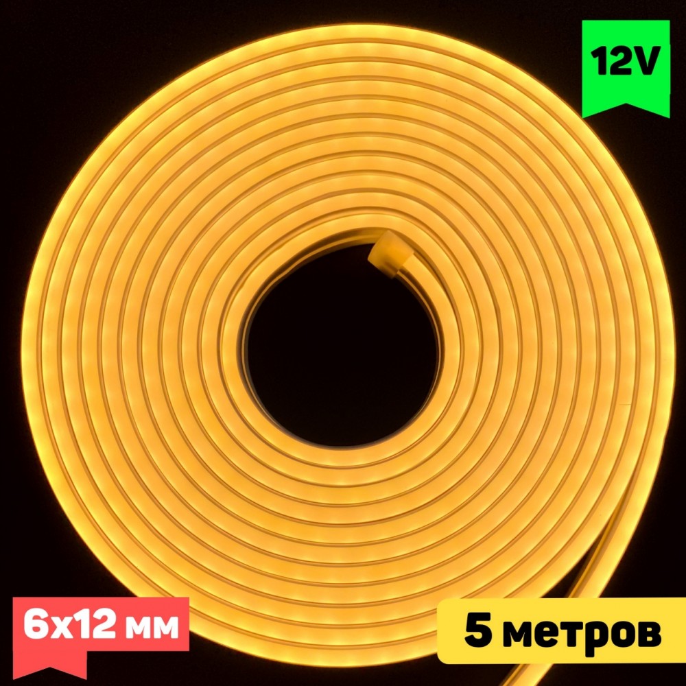 Гибкий неон тёплый 3000К. Потребляема мощность 10 вт/метр. Рабочее напряжение 12 Вольт. Длина катушки 5 метров.