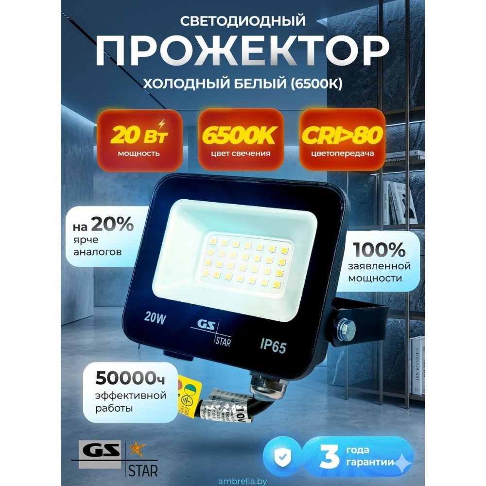 Прожектор светодиодный GS star GS-LR-20W холодный белый, 20W CRI 80+, 100% power