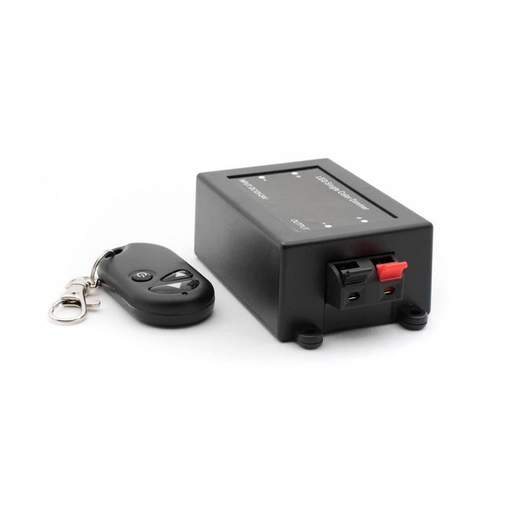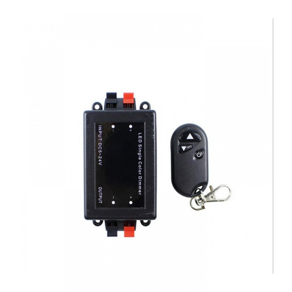 Одноканальный диммер с управлением по радиоканалу. Позволяет регулировать яркость светодиодных лент и модулей на расстоянии при помощи пульта-брелока.