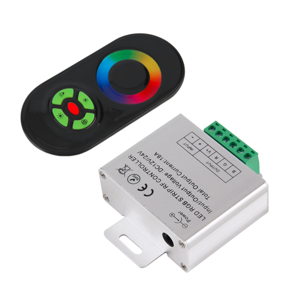 RGB-контроллер. Выбор цвета с помощью сенсорного кольца, прямой выбор белого цвета, 12-24V, 216/432W, 85х65х24 мм.