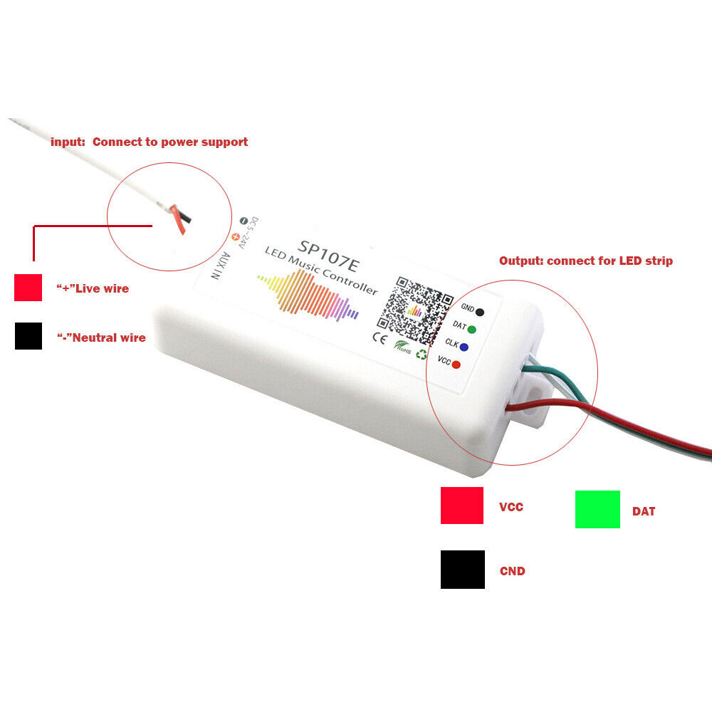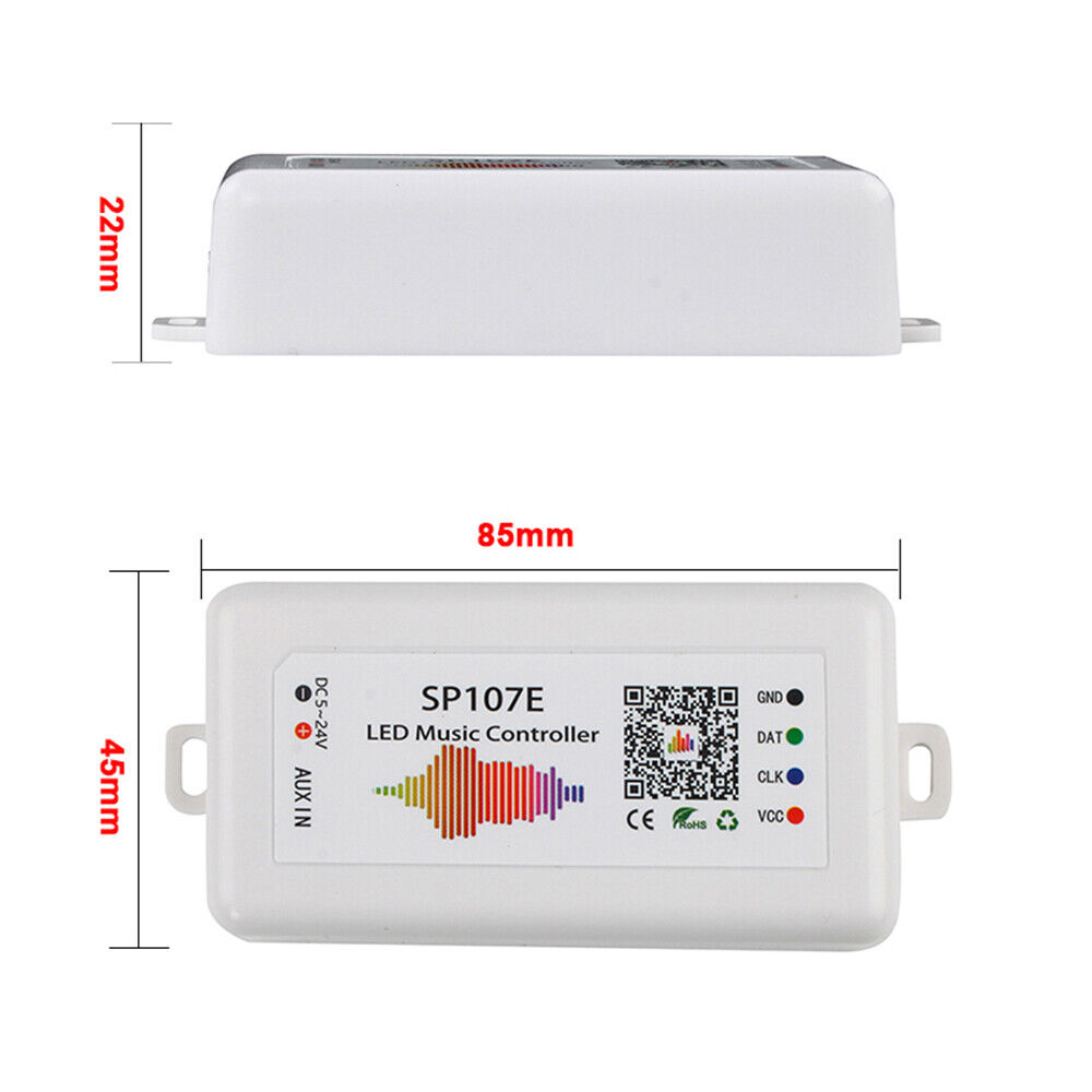 Музыкальный Bluetooth контроллер для SPI ленты(бегущая волна) SP107E. Управление с помощью приложения, совместим с Android 4.4/IOS 10.0 и выше., 2048 пикселей