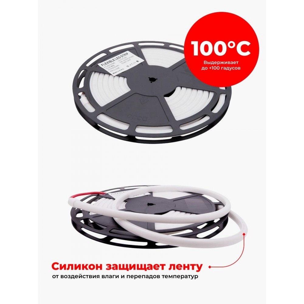 Лента гибкий неон рассчитана для работы при температуре от -40 до +100 С°. Светодиодная лента 24В имеет 180 диодов на 1 метр, что обеспечивает равномерное и яркое свечение.Термостойкая лэд лента имеет герметичную силиконовую оболочку, термостойкий силикон, который обеспечивает ей отличную защиту от воздействия влаги и от внешнего перегрева. Светодиодная лента 5 метров работает от блока питания с напряжением 24V.Стоимость указана за 1м.
