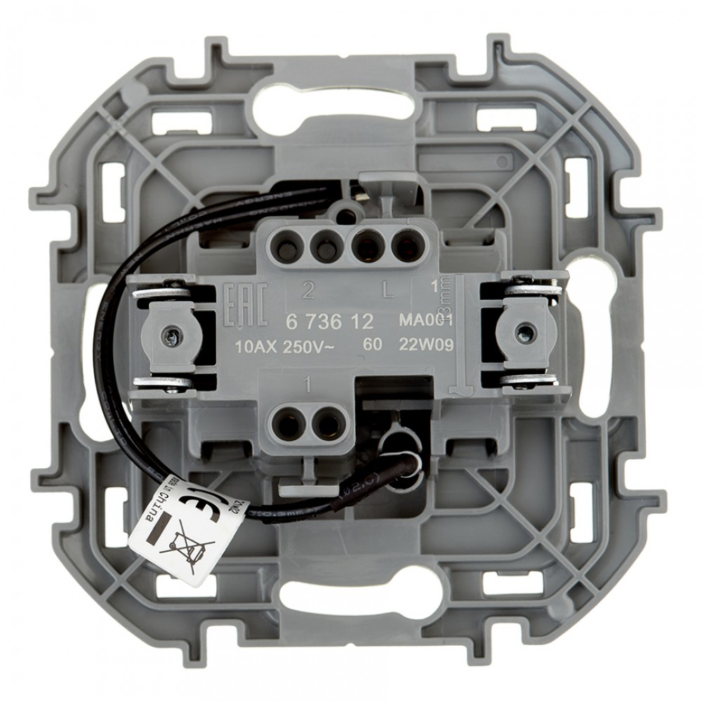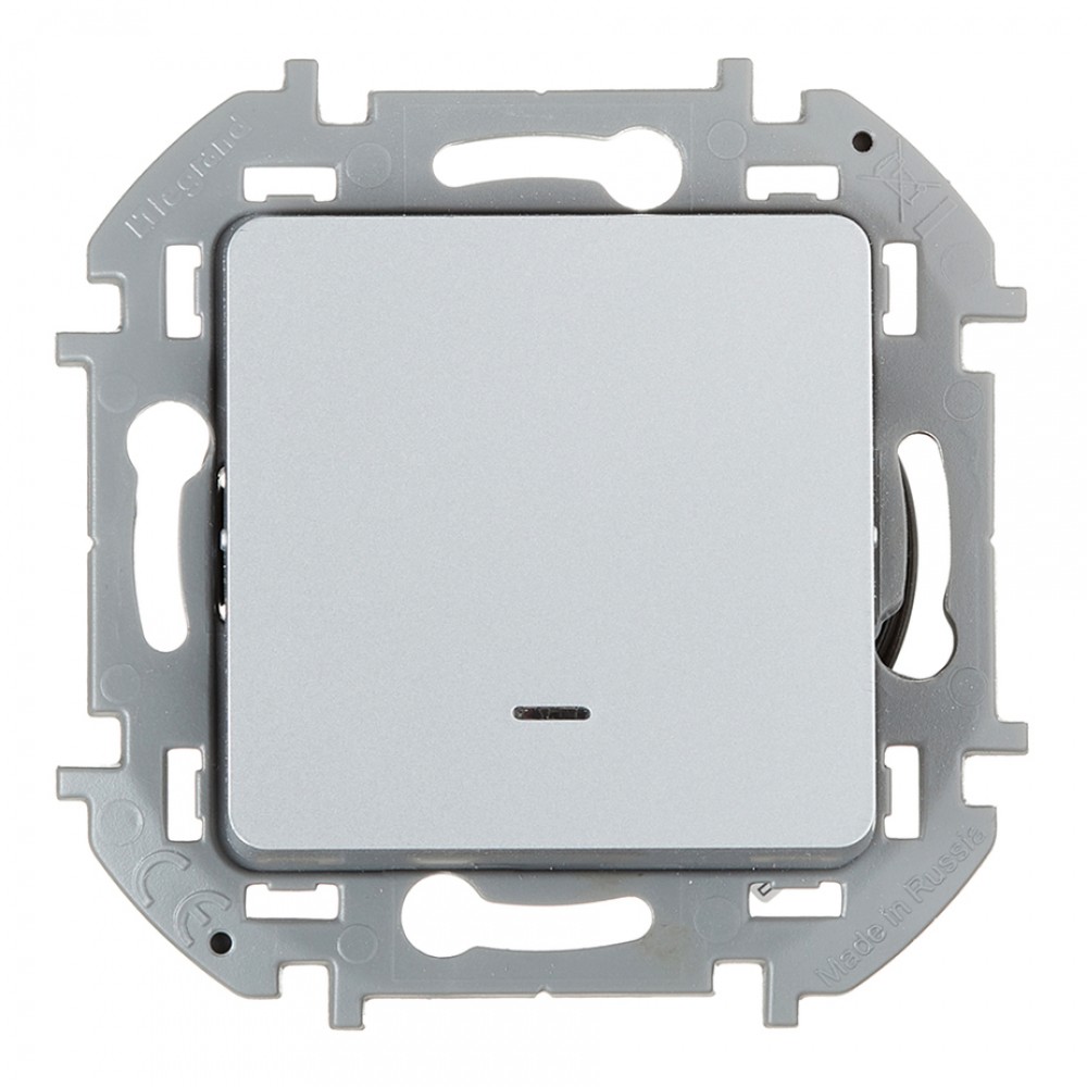 Выключатель одноклавишный с подсветкой/индикацией Legrand Inspiria для скрытого монтажа, цвет "Алюминий", номинальный ток 10 А, напряжение ~250 В. Предназначен для установки в электрических сетях жилых и общественных зданий и используется для управления приборами освещения, вентиляции и т.д. Оснащен светодиодной лампой для подсветки или индикации.Особенности изделия: - Компактный механизм с глубиной всего 20 мм. комфортно размещается в различных монтажных коробках. - Материал клавиш - глянцевый пластик АБС, стоек к выгоранию и загрязнениям. - Все токоведущие части выключателя имеют защиту от случайного прикосновения. - Безвинтовые зажимы для присоединения проводов обеспечивают быстрое подключение и отключение, гарантируют надежное и долговечное соеднинение и не требуют обслуживания. - Удобные широкие толкатели облегчают работу по демонтажу провода. - Улучшенная эргономика снижает вероятность искрения при коммутации светодиодов. - Ход клавиши короткий, не громкий. - Универсальная LED-лампа белого цвета с низким энергопотреблением 0.125мА и возможностью замены - Благодаря свободной схеме подключения, лампа подсветки либо облегчает ориентирование в темноте, либо информирует о включении нагрузки. - Клавиша оборудована линзой для заметного светового сигнала подсветки или индикации.