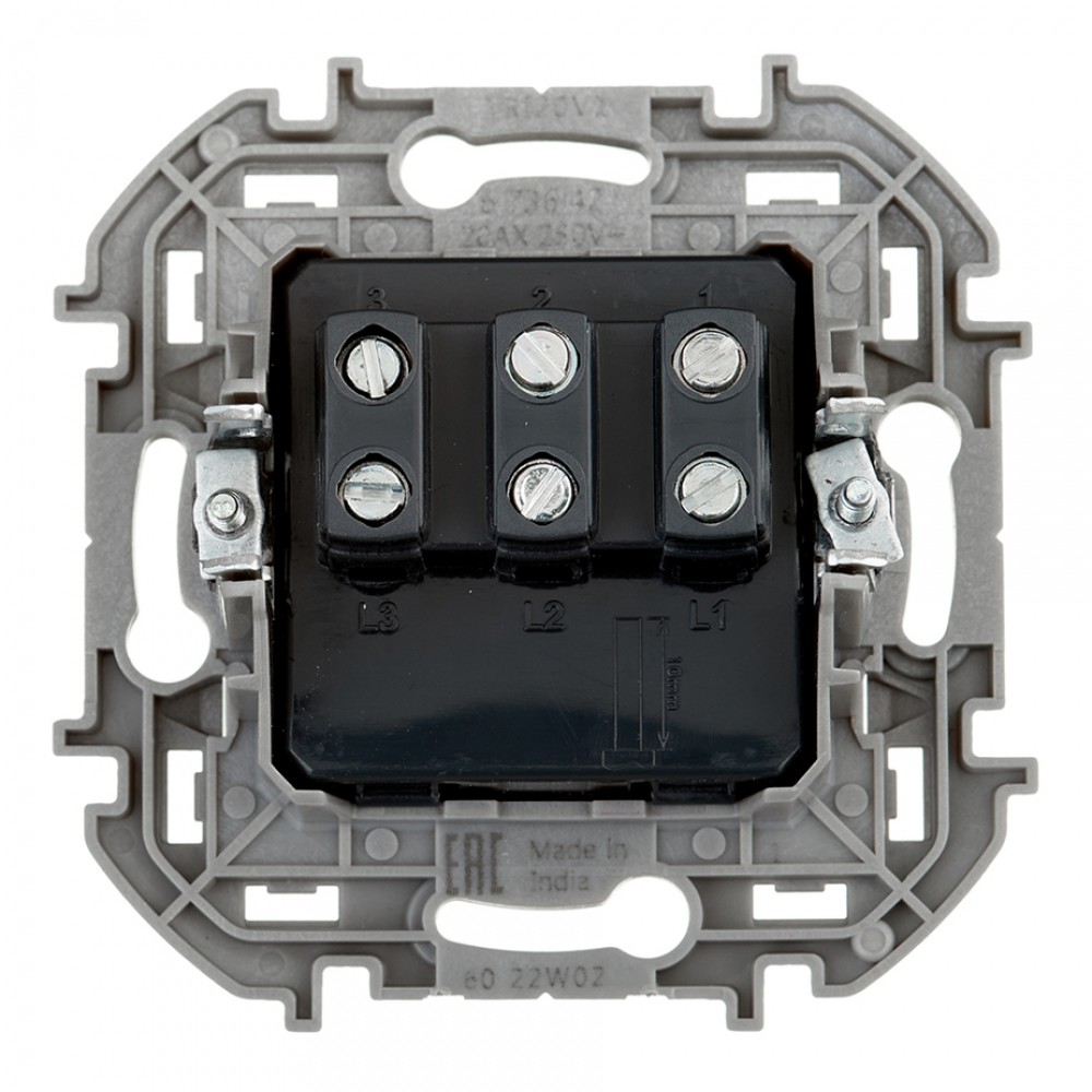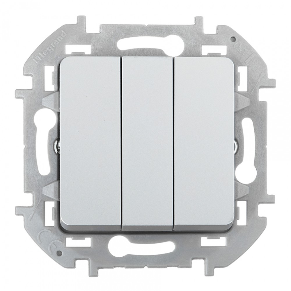 Выключатель трехклавишный Legrand Inspiria для скрытого монтажа, цвет "Алюминий", увеличенный номинальный ток 20 А, напряжение ~250В. Предназначен для установки в электрических сетях жилых и общественных зданий и используется для управления приборами освещения, вентиляции и т.д. Используется для независимой коммутации трех нагрузок с одного места, подходит для управления многорожковыми люстрами и осветительными приборами с большим количеством ламп.Особенности изделия: - Материал клавиш - глянцевый пластик АБС, стоек к выгоранию и загрязнениям. - Для подсоединения проводов используются винтовые зажимы. - Все токоведущие части выключателя имеют защиту от случайного прикосновения. - Улучшенная эргономика снижает вероятность искрения при коммутации светодиодов. - Ход клавиши короткий, не громкий.