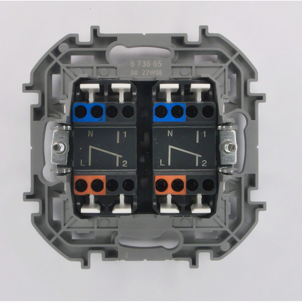 Переключатель проходной двухклавишный с подсветкой INSPIRIA белый