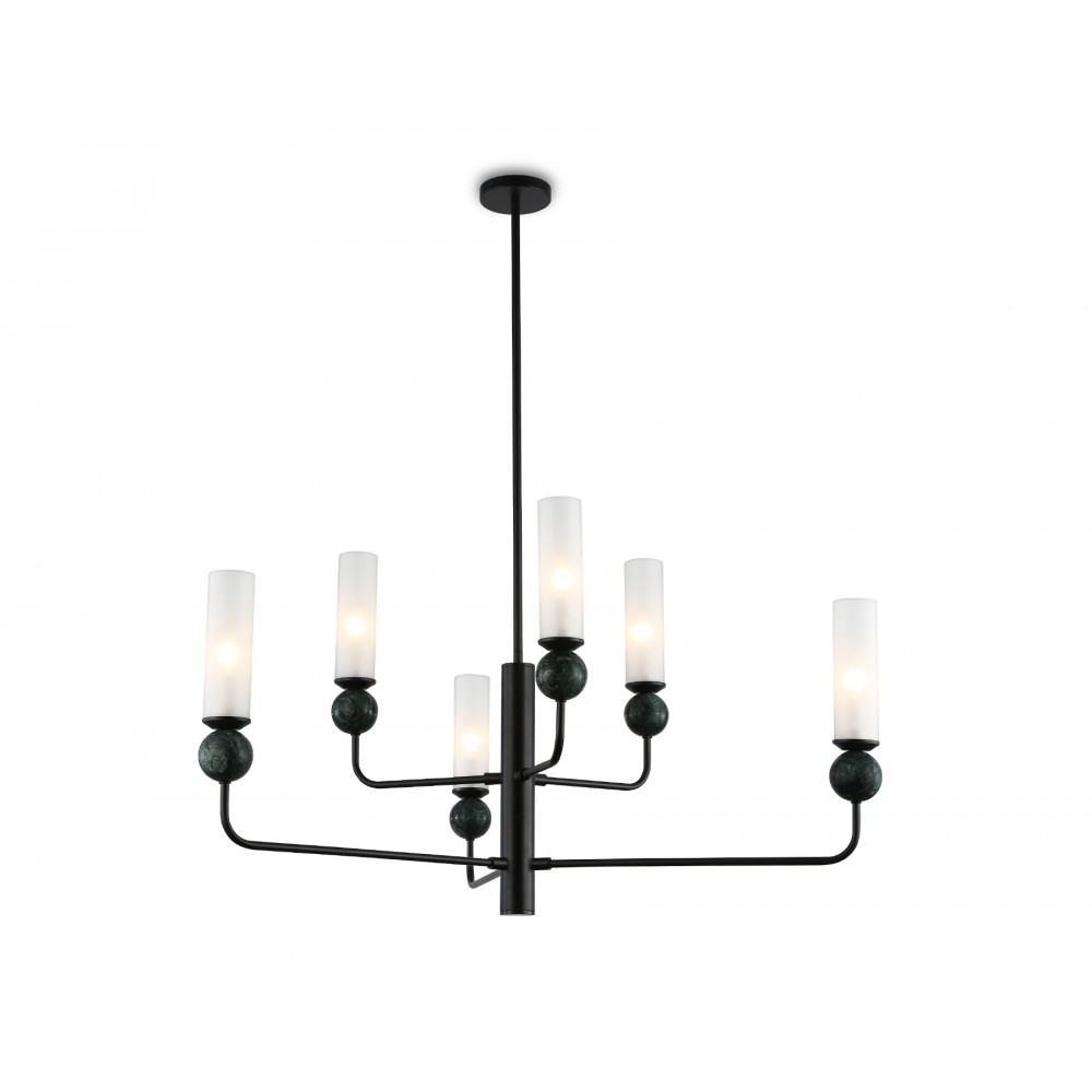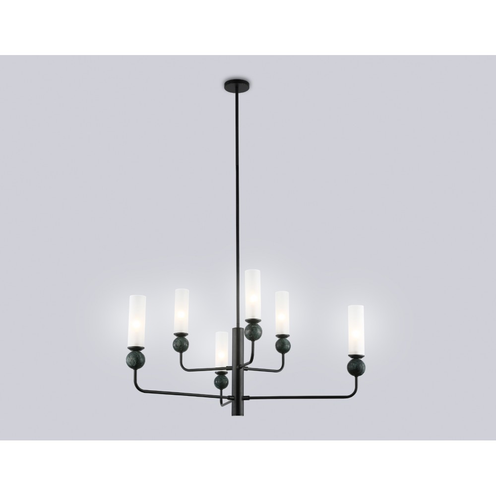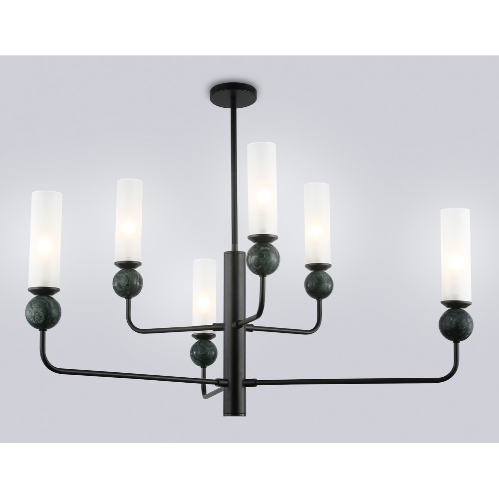 Люстра на штанге с мрамором из коллекции HIGH LIGHT. Модель LH53274 представлена в современном стиле модерн. Люстра выполнена из металлического каркаса черного цвета, стеклянных плафонов белого цвета и декорирована элементами из мрамора зеленого цвета. Для данной модели подойдут лампы с цоколем Е14. Люстра будет прекрасным дополнением в любом помещении.