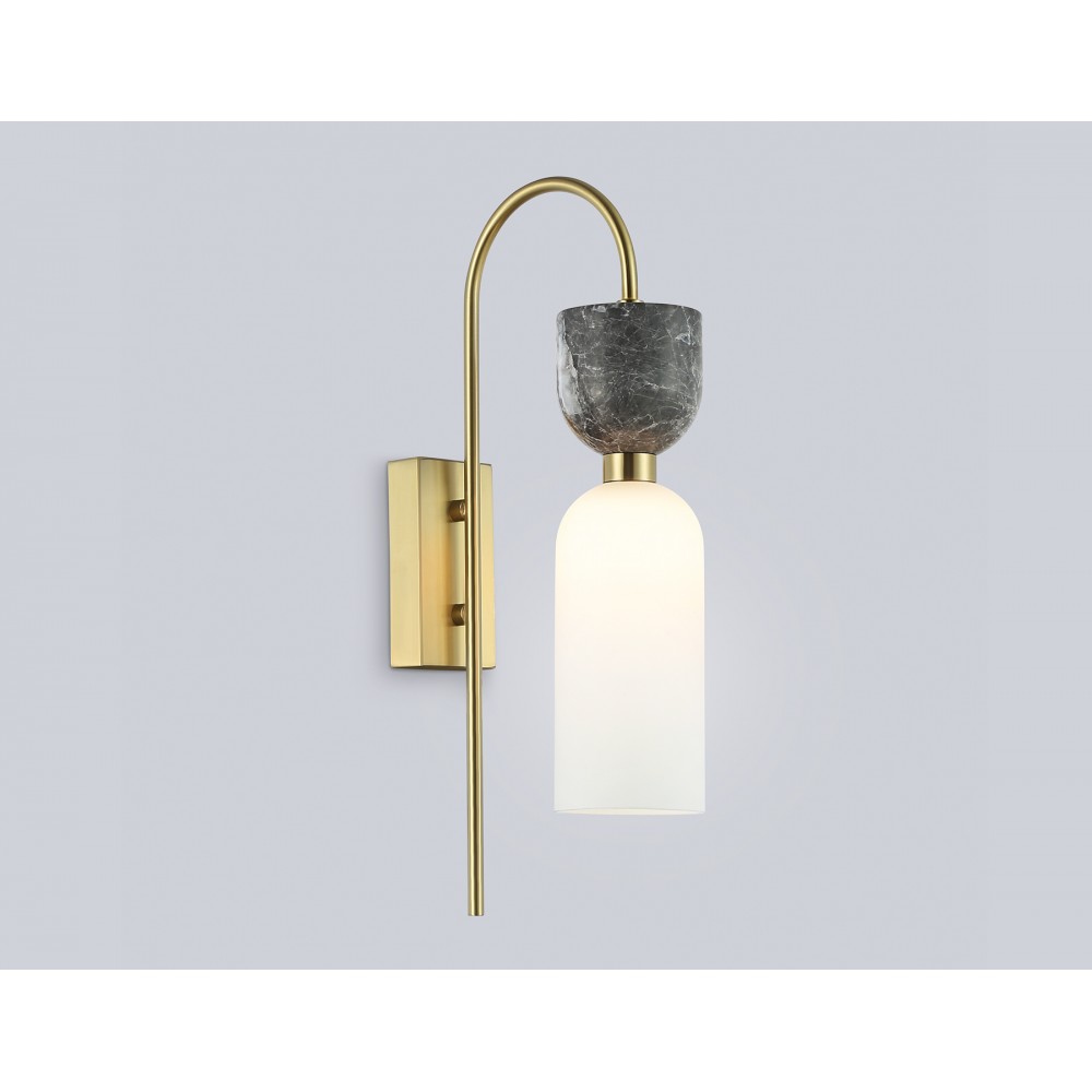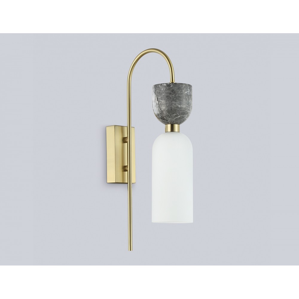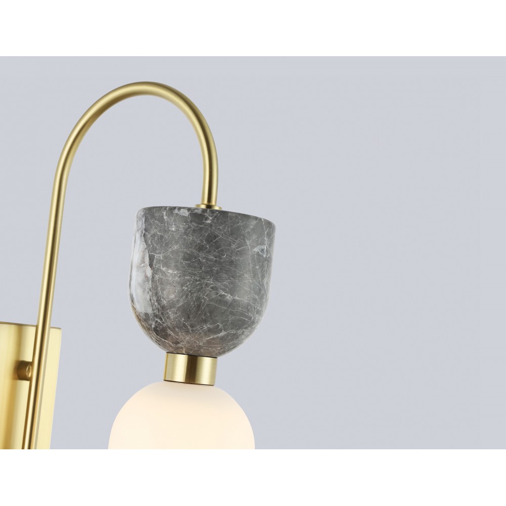 Настенный светильник с мрамором из коллекции HIGH LIGHT. Модель LH53335 представлена в современном стиле модерн. Светильник выполнен из металла цвета золото, стеклянного плафона белого цвета и декорирован элементами из мрамора серого цвета. Для данной модели подойдет сменная лампа с цоколем G9. Светильник будет прекрасным дополнением в любом помещении.