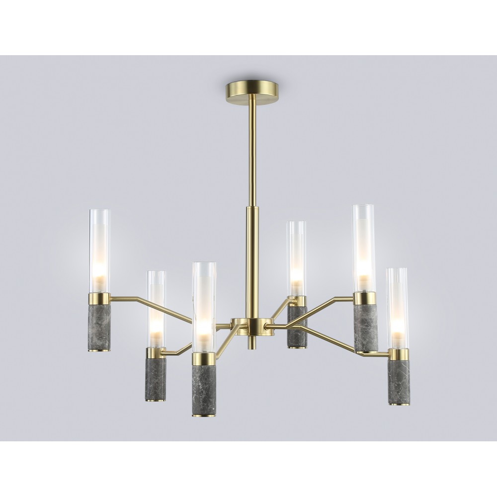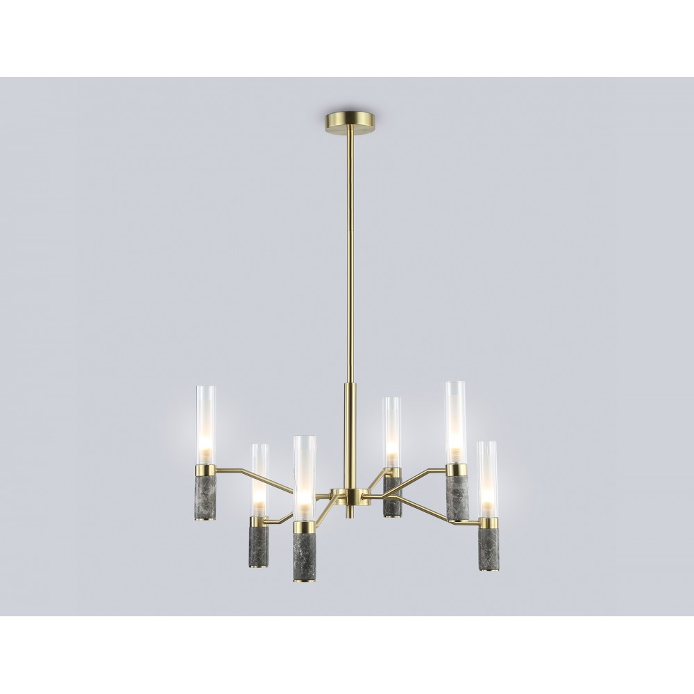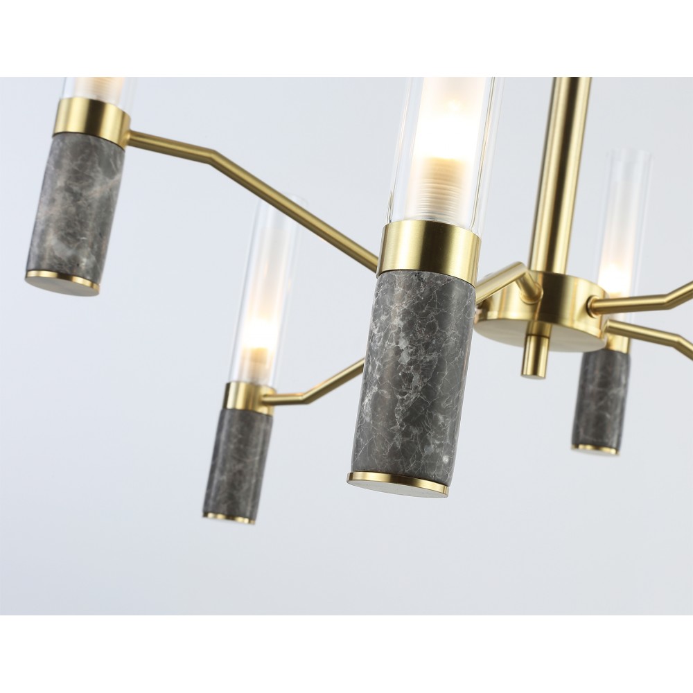 Люстра на штанге с мрамором из коллекции HIGH LIGHT. Модель LH53353 представлена в современном стиле модерн. Люстра выполнена из металлического каркаса цвета золото, стеклянных плафонов и декорирована элементами из мрамора серого цвета. Для данной модели подойдут лампы с цоколем G9. Люстра будет прекрасным дополнением в любом помещении.