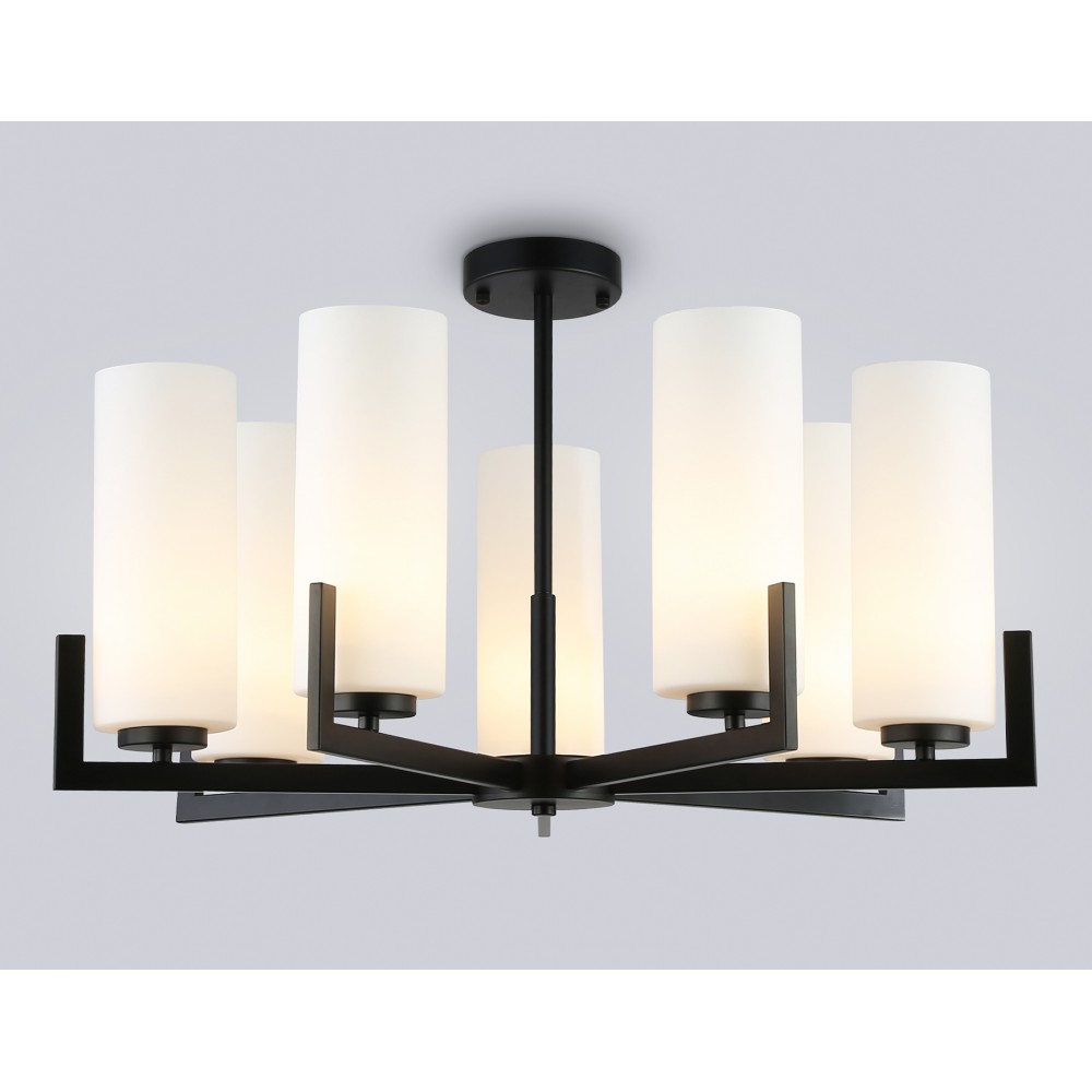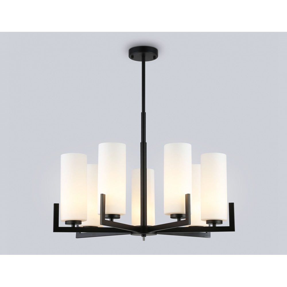 Люстра на штанге из коллекции HIGH LIGHT. Модель LH56058 представлена в современном стиле модерн. Светильник выполнен из металлического каркаса черного цвета и белых стеклянных плафонов. Для данной модели подойдет сменная лампа с цоколем Е27. Светильник будет прекрасным дополнением в любом помещении.