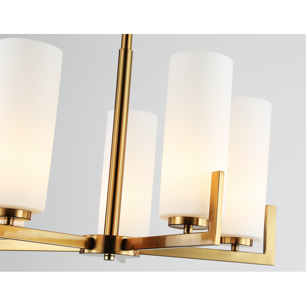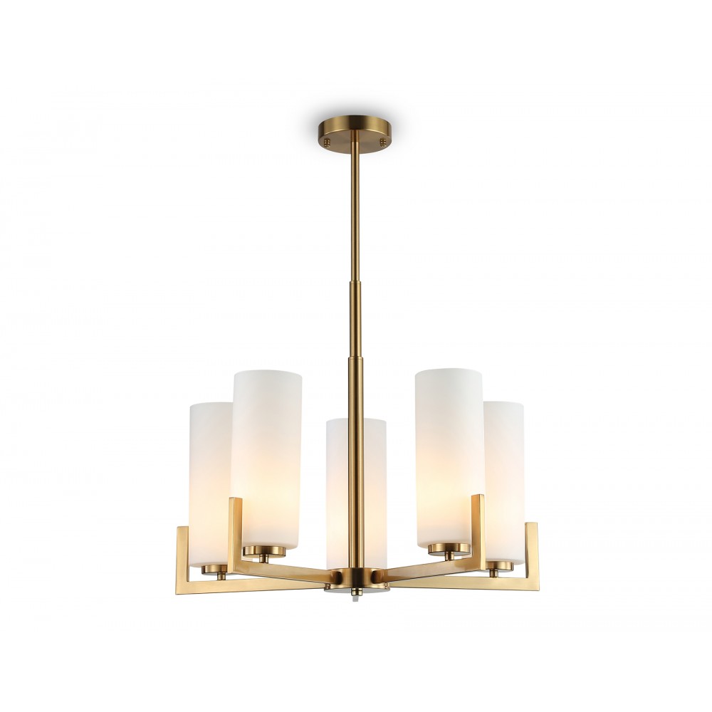Люстра на штанге из коллекции HIGH LIGHT. Модель LH56063 представлена в современном стиле модерн. Светильник выполнен из металлического каркаса цвета латунь и белых стеклянных плафонов. Для данной модели подойдет сменная лампа с цоколем Е27. Светильник будет прекрасным дополнением в любом помещении.