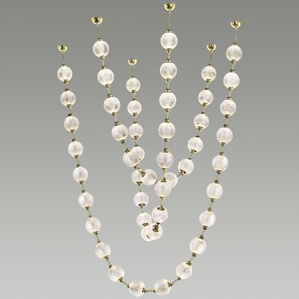 Великолепная светодиодная линия Crystal поражает изяществом, лаконичностью и многообразием модельного ряда. Люстра в виде множества свисающих бус, которые создают красивый ансамбль, предназначенная для помещений с высокими потолками, лестничных пролетов в коттеджах и залов со вторым светом, прекрасно украсит интерьер в различных стилях — от неоклассики до хайтека. Множество акриловых шариков, имитирующих хрустальную резную фактуру, создадут непередаваемую игру света и переливов.Модель предназначена для установки в подвесной потолок или потолок из гипсокартона. Драйвер устанавливается «за потолком» на расстоянии не более 1,5м от люстры.