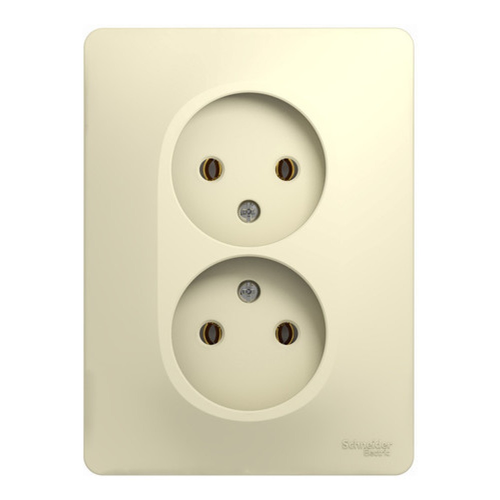 Розетка двойная Schneider Electric Glossa (в сборе, цвет бежевый) без заземления и без шторок подходит для сетей 250 В, на ток 16 А.- Выполнен из материала PС+ASA, стойкого к УФ-излучению и появлению царапин.- Эргономичные клеммы розеток расположены в один ряд.- Двойная розетка позволяет подключить два устройства в одном месте.