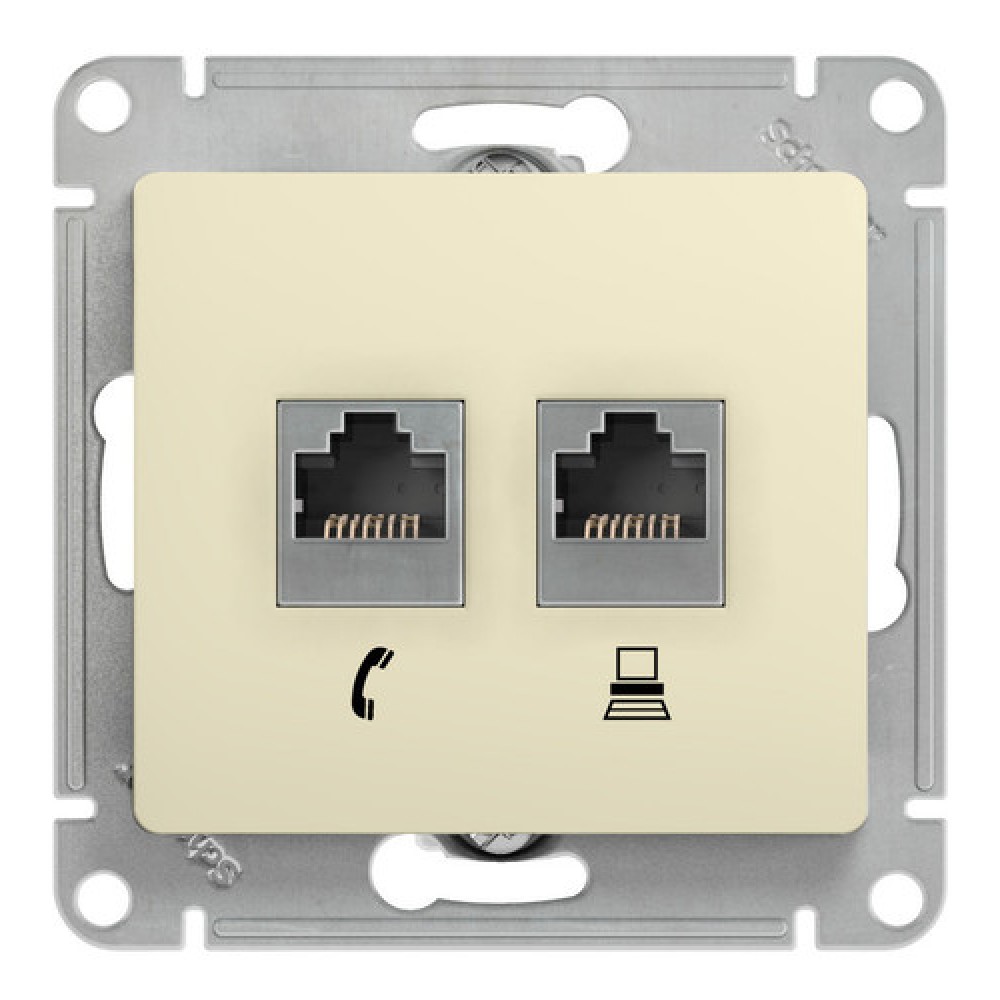 Механизм Schneider Electric Glossa (цвет бежевый) двойной розетки разъёмами RJ45 категория 5е и RJ11 предназначен для удобного и быстрого подключения вашего компьютера и телефона к соответствующим сетям.- Выполнен из материала PС+ASA, стойкого к УФ-излучению и появлению царапин.