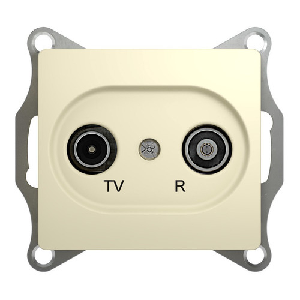 Механизм Schneider Electric Glossa (цвет бежевый) розетки TV-R оконечной 1DB предназначен для подключения бытовой теле-, видео- и радиоаппаратуры к антенному кабелю при внутренней установке в жилых, общественных и промышленных помещениях.- Оконечная розетка может устанавливаться как отдельно, так и в конце подключения «в линию».- Выполнен из материала PС+ASA, стойкого к УФ-излучению и появлению царапин.