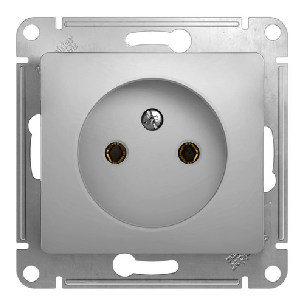 Механизм Schneider Electric Glossa (цвет алюминий) розетки одинарной без заземления и без шторок подходит для сетей 250 В, на ток 16 А.- Выполнен из материала PС+ASA, стойкого к УФ-излучению и появлению царапин.- Эргономичные клеммы розеток расположены в один ряд.