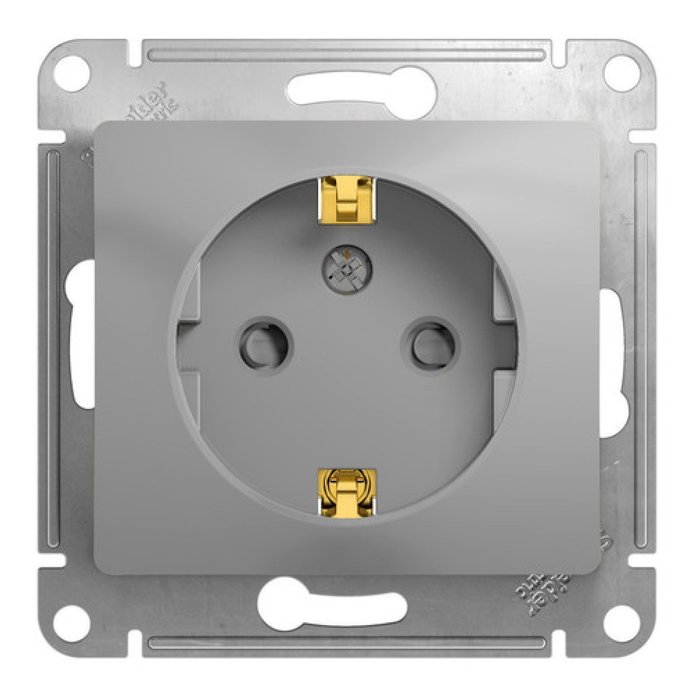 Механизм Schneider Electric Glossa (цвет алюминий) розетки одинарной с заземлением и шторками подходит для сетей 250 В, на ток 16 А.- Заземляющий контакт обеспечивает дополнительную защиту от удара электрическим током. При наличии заземления электрический потенциал уходит в землю, защищая человека.- Выполнен из материала PС+ASA, стойкого к УФ-излучению и появлению царапин.- Эргономичные клеммы розеток расположены в один ряд.