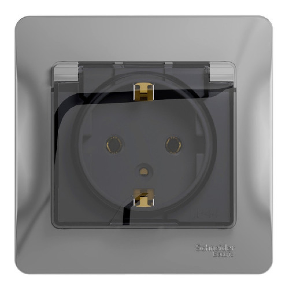 Розетка Schneider Electric Glossa (в сборе, цвет алюминий) одинарная с заземлением, шторками и крышкой подходит для сетей 250 В, на ток 16 А.- Заземляющий контакт обеспечивает дополнительную защиту от удара электрическим током. При наличии заземления электрический потенциал уходит в землю, защищая человека.- Выполнен из материала PС+ASA, стойкого к УФ-излучению и появлению царапин.- Эргономичные клеммы розеток расположены в один ряд.