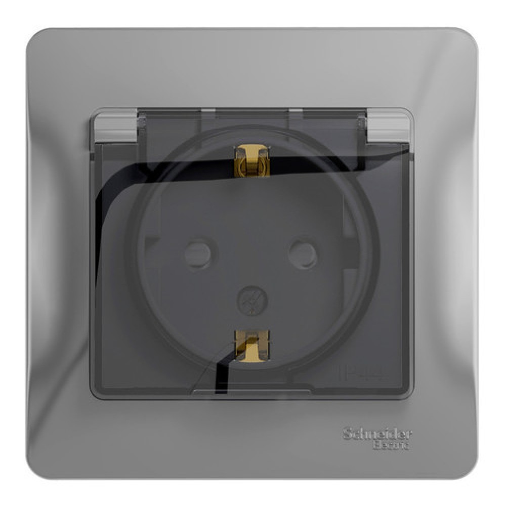 Розетка Schneider Electric Glossa (в сборе, цвет алюминий) одинарная с заземлением, шторками и крышкой подходит для сетей 250 В, на ток 16 А.- Изделие со степенью защиты IP44 обеспечит безопасность использования в ванной и на кухне.- Заземляющий контакт обеспечивает дополнительную защиту от удара электрическим током. При наличии заземления электрический потенциал уходит в землю, защищая человека.- Выполнен из материала PС+ASA, стойкого к УФ-излучению и появлению царапин.