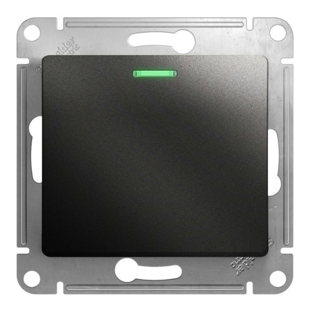 Механизм Schneider Electric Glossa (цвет антрацит) выключателя 1-клавишного с подсветкой подходит для сетей 250 В, на ток 10 А.- Благодаря современной светодиодной подсветке зеленого цвета изделие легко найти в темноте.- Выполнен из материала PС+ASA, стойкого к УФ-излучению и появлению царапин.- Эргономичные клеммы расположены в два ряда: сверху и снизу.