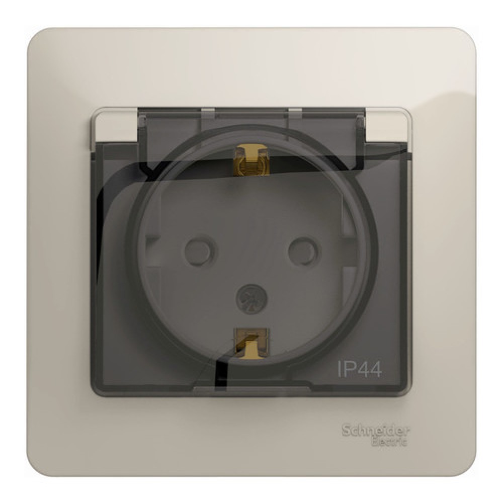 Розетка Schneider Electric Glossa (в сборе, цвет молочный) одинарная с заземлением, шторками и крышкой подходит для сетей 250 В, на ток 16 А.- Изделие со степенью защиты IP44 обеспечит безопасность использования в ванной и на кухне.- Заземляющий контакт обеспечивает дополнительную защиту от удара электрическим током. При наличии заземления электрический потенциал уходит в землю, защищая человека.- Выполнен из материала PС+ASA, стойкого к УФ-излучению и появлению царапин.