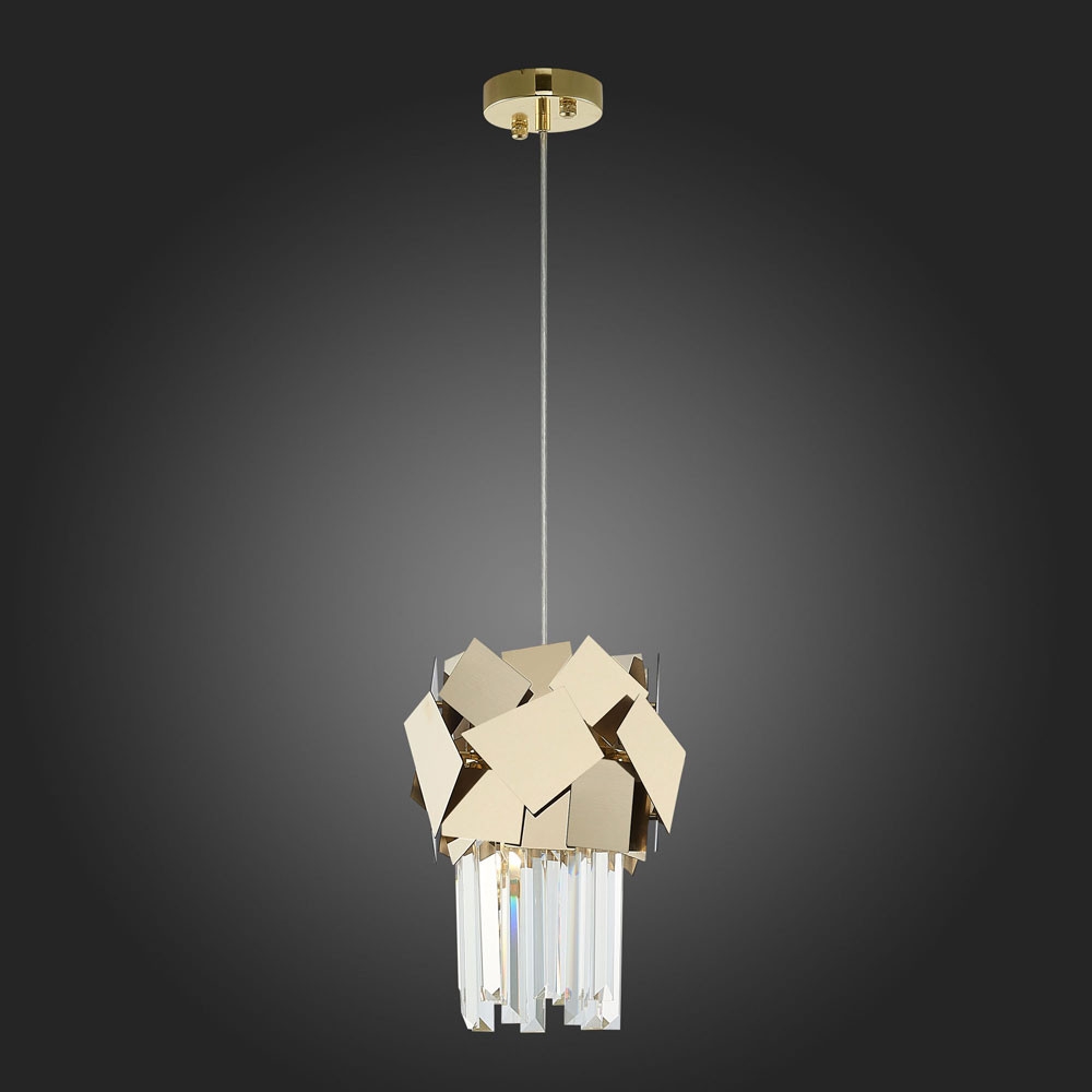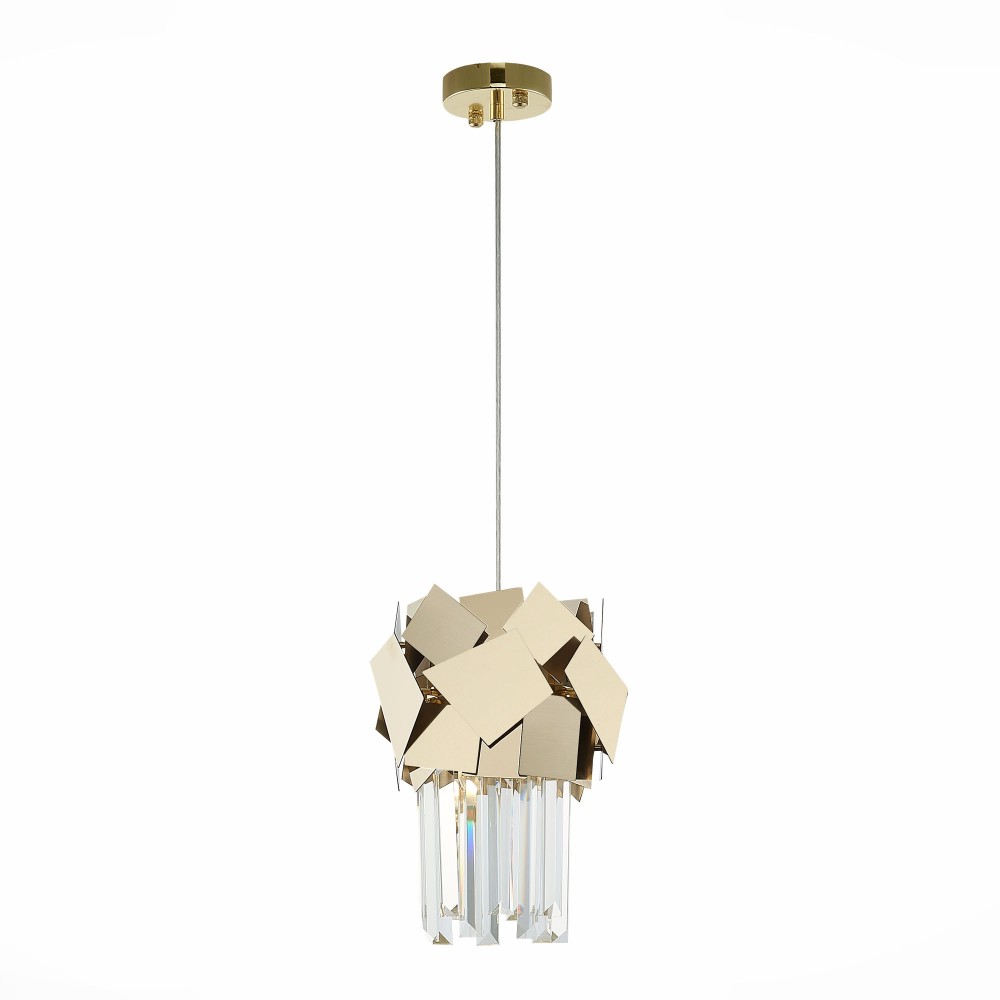 Подвесной светильник хрустальный Caserta SL1232.203.01 от итальянской фабрики ST Luce украсит гостиную, спальню, кухню, кабинет в стиле модерн. Материал — металл, цвет золото. Плафон из хрусталя с цоколем E14 и максимальной мощностью 60W освещает площадь до 3 кв. м. Питание от сети 220V. Технические особенности: доступно подключение диммера. Устанавливается на пластину. Габариты: высота — 30 см, диаметр — 23 см.